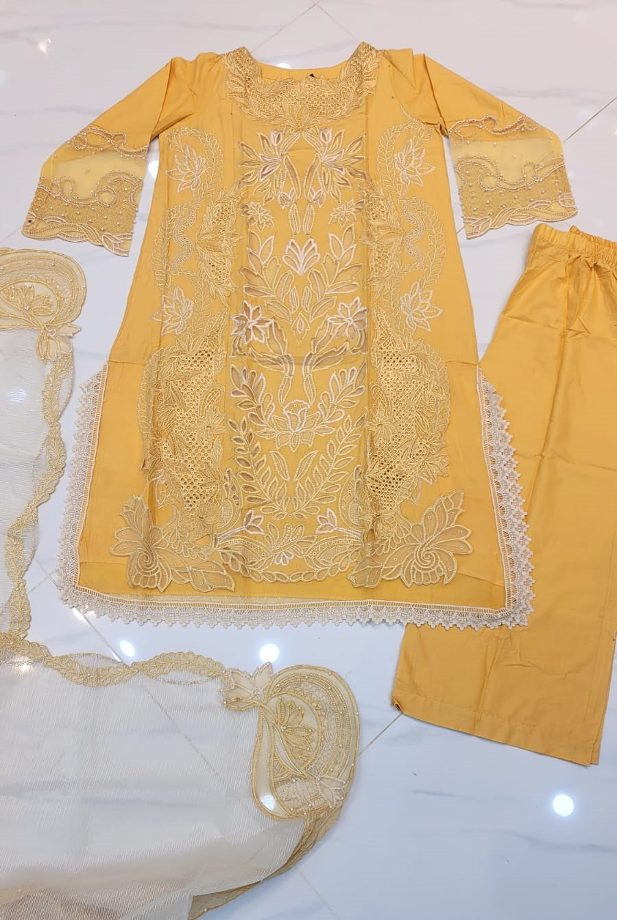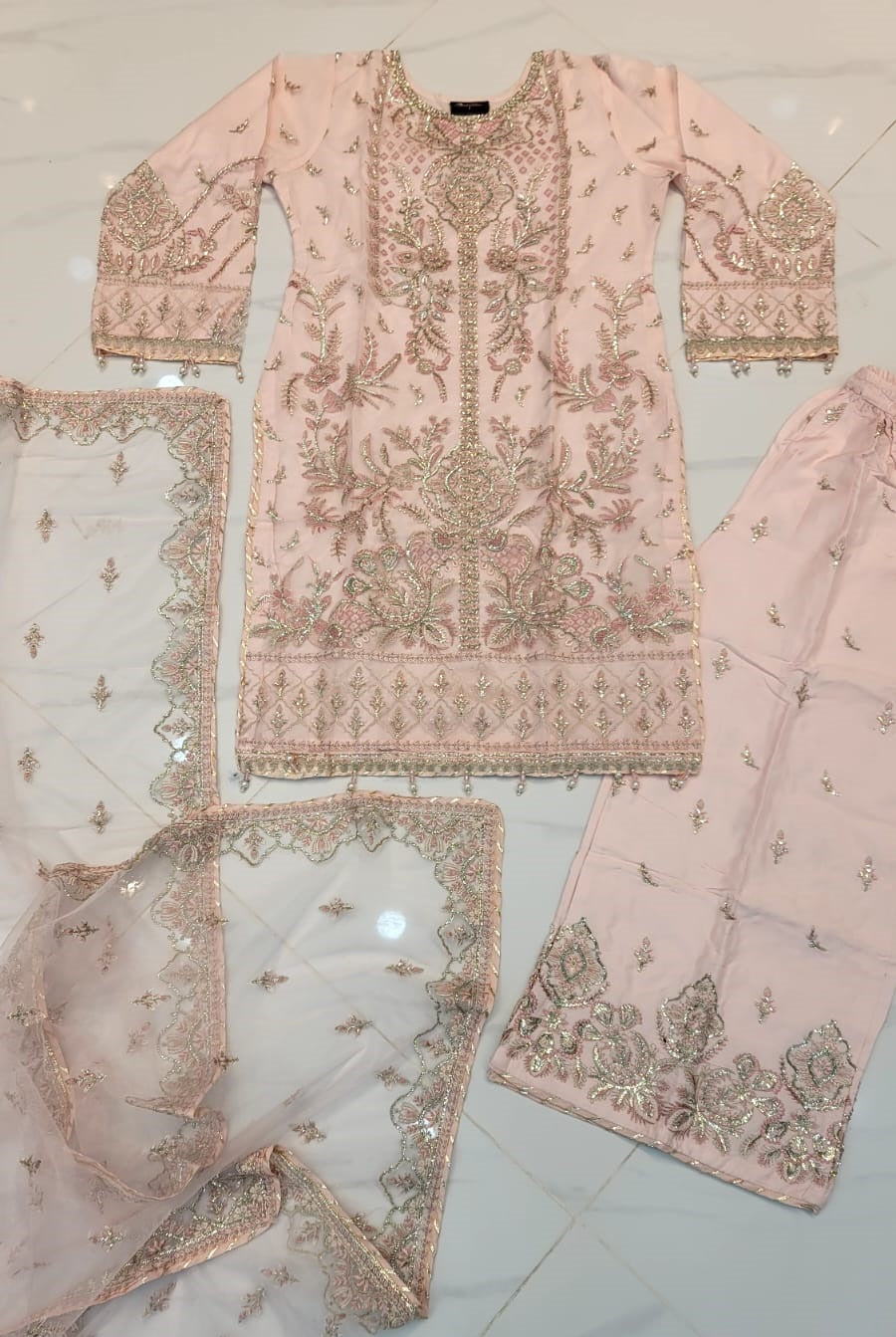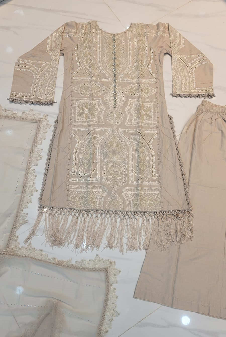 Paired with a refined dupatta for a cohesive look.