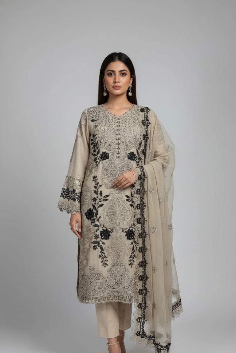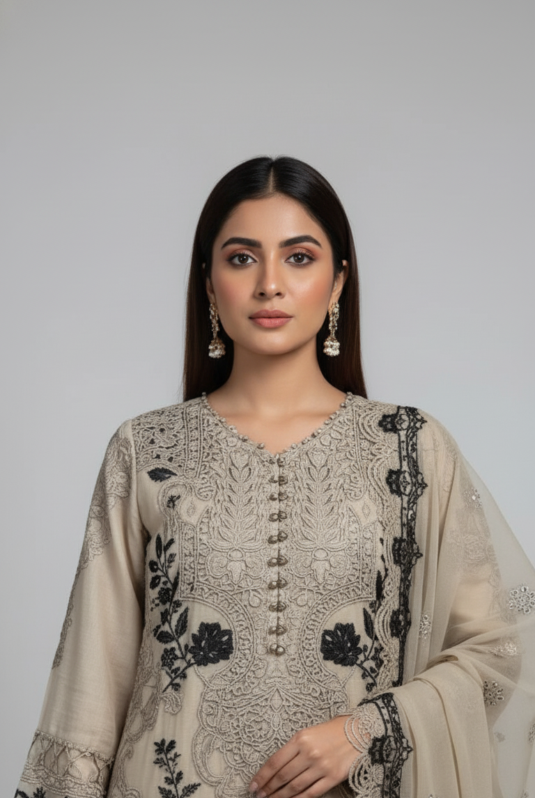Intricate details on Paper Cotton 🧵 paired with a Crinkle Chiffon dupatta 🌸