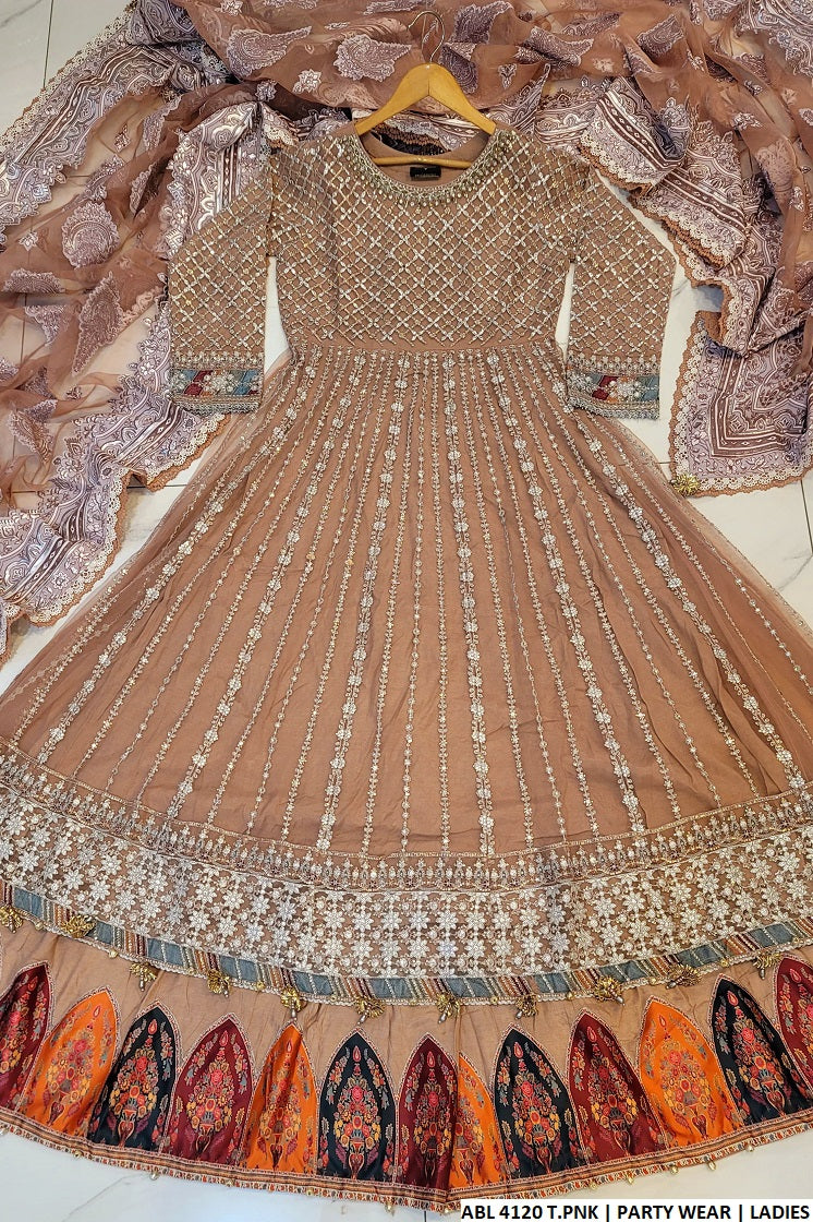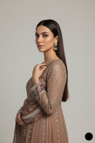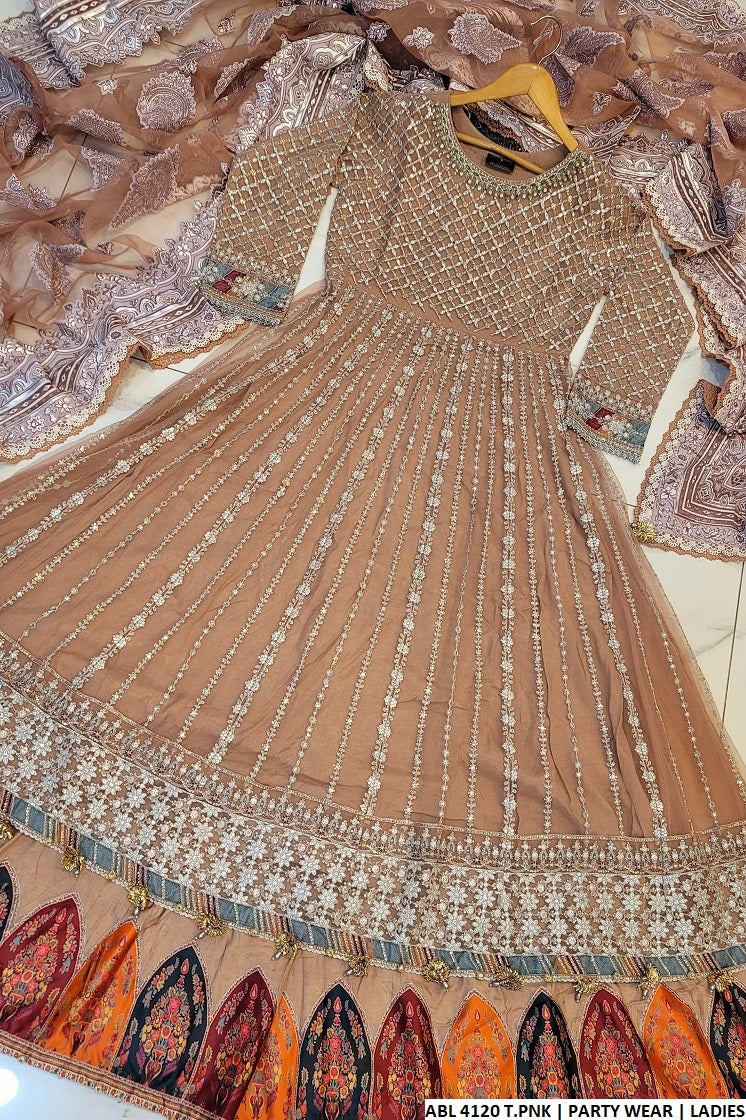 This exquisite ensemble is a stunning fusion of elegance and style, featuring a beautifully crafted Net fabric shirt paired with structured Grip trousers for a comfortable yet refined look. The outfit is enhanced by a delicate Organza dupatta, which brings an extra layer of sophistication and grace. Styled as a Long Frock with Lehenga, the flowing silhouette and shirt length of 54 to 56 inches create a regal appearance perfect for grand celebrations. Weighing only 1.550 kg, this outfit remains lightweight while offering a luxurious look, making it a perfect choice for weddings, receptions, and festive gatherings.