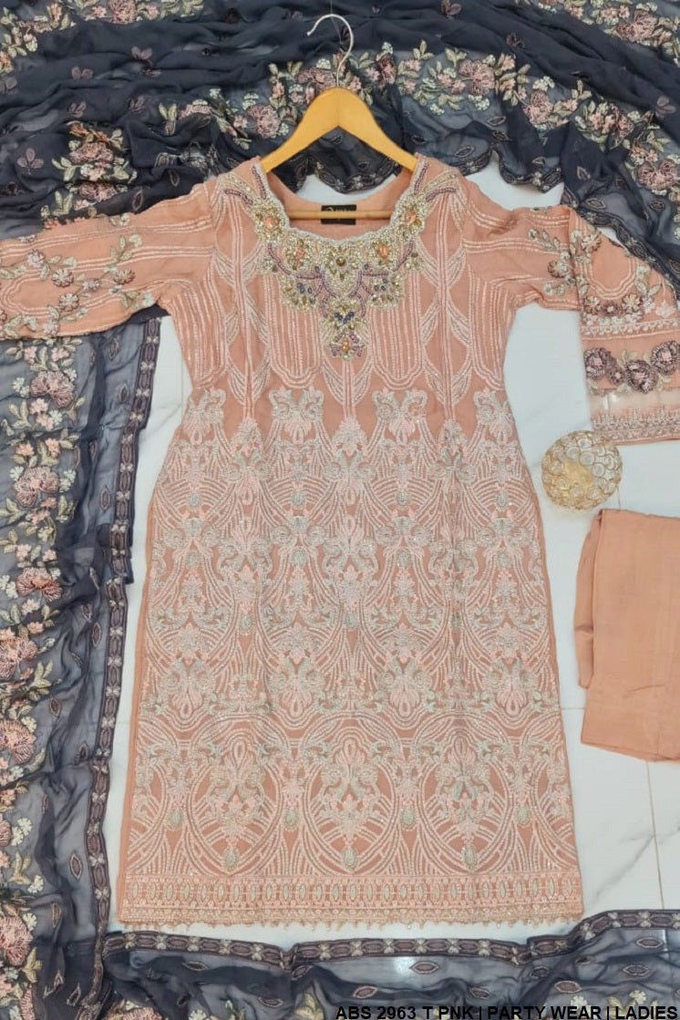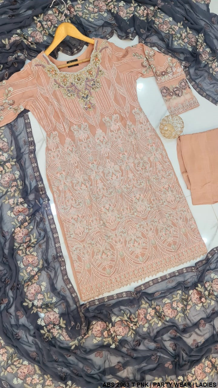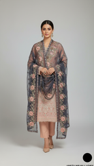 This elegant ensemble features a shirt crafted from chiffon, offering a lightweight and graceful drape. With a length of 40 to 42 inches, the shirt provides a flattering and refined look. It is paired with trousers made from grip fabric, ensuring both comfort and a structured fit. Completing the outfit is a matching chiffon dupatta, adding a delicate touch of sophistication. Weighing approximately 1.100 kg, this ensemble combines style and comfort, making it a perfect choice for various occasions. The intricate design details further elevate the overall appeal of the outfit