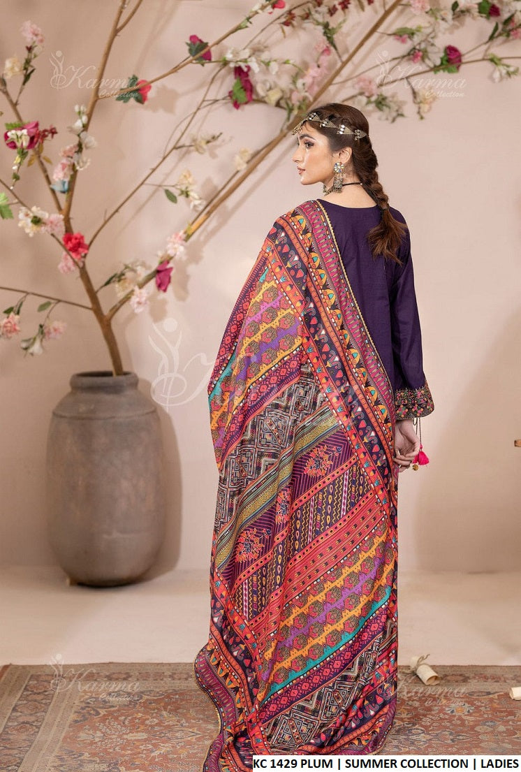 This trendy and breathable outfit features a straight short shirt paired with matching cotton trousers, designed for everyday elegance and ease. Made entirely from soft, high-quality cotton, it promises comfort in warm weather without compromising on style. The look is enhanced by a digitally printed dupatta, bringing a touch of vibrance and flair. With a practical shirt length of 36 to 38 inches and a total weight of just 0.700 kg, this lightweight set is an ideal choice for casual gatherings, daywear, or summer outings.