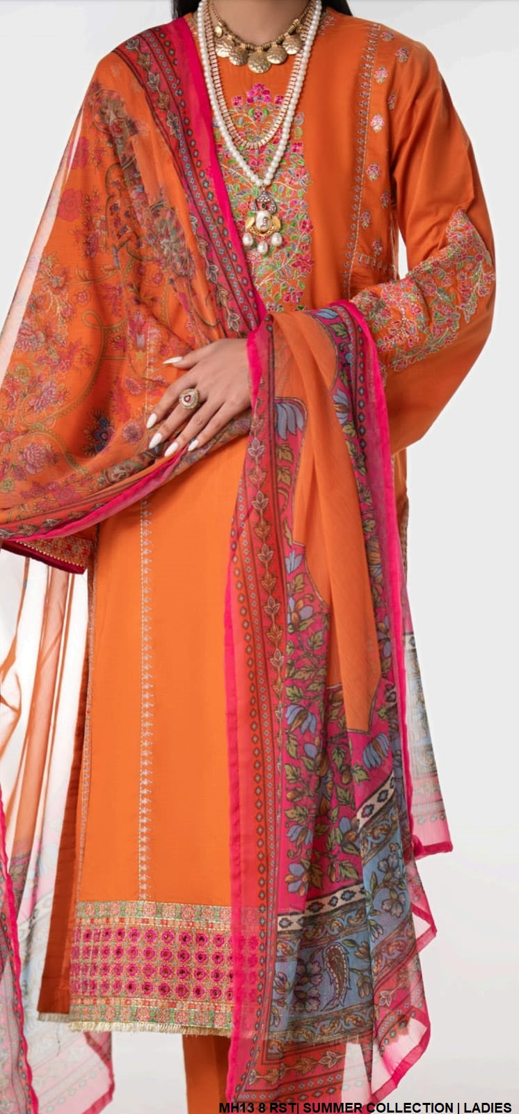 1. This outfit features a stylish straight shirt made from high-quality cotton fabric, ensuring comfort and durability. Paired with matching cotton trousers, it offers a cohesive and elegant look. The digitally printed dupatta enhances the ensemble with its vibrant and artistic appeal. With a shirt length of 43/43 inches, the design is both flattering and versatile. Weighing 0.550 kg, this outfit is lightweight and perfect for any occasion, combining style and practicality effortlessly.