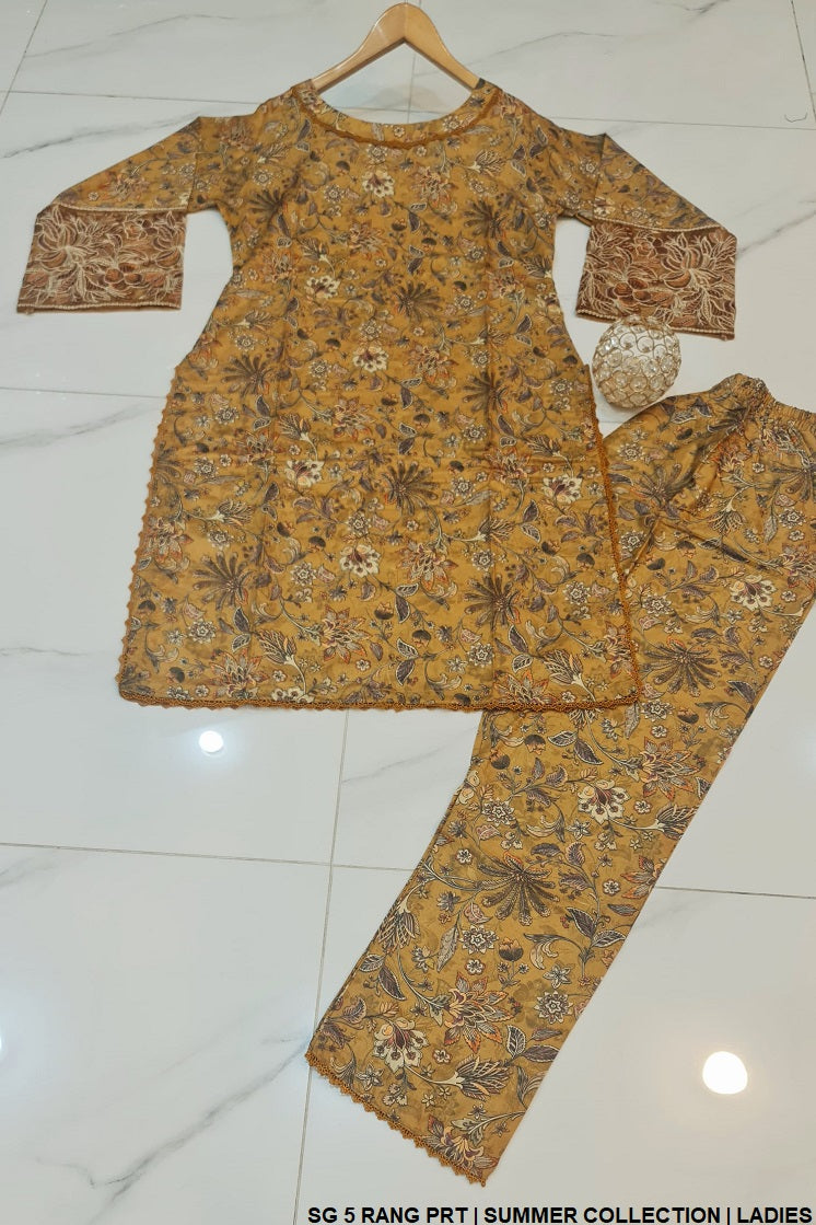 1. The shirt is crafted from high-quality lawn fabric, complemented by matching lawn fabric for the trousers. The dupatta comes in a 2-piece set, enhancing the overall ensemble. Featuring a sleek straight shirt design, the shirt is available in lengths of 38/40, providing a versatile and flattering fit. The total weight of the set is 0.300 kg, making it lightweight and comfortable for everyday wear.