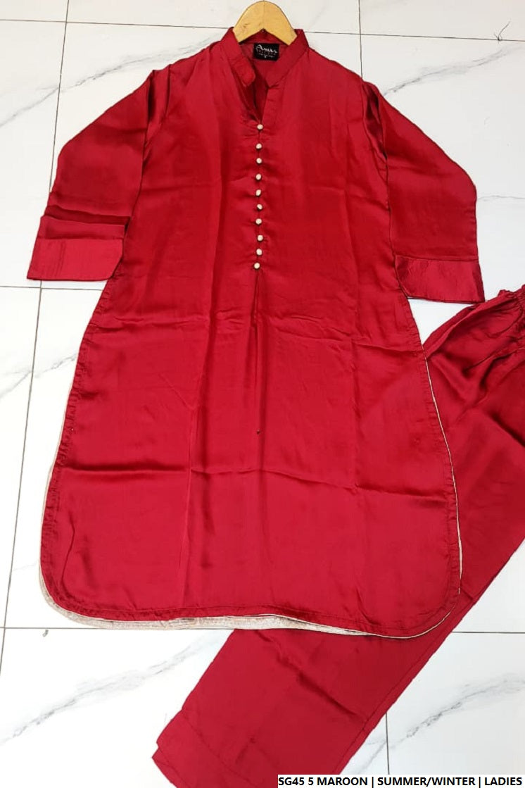 Elevate your wardrobe with this elegant 2-piece suit featuring a classic Gol Daman shirt made from luxurious silk fabric. Paired with matching silk trousers, this outfit offers a soft, graceful drape and a subtle sheen that enhances its sophisticated look. With a shirt length ranging from 40 to 42 inches, it provides modest coverage while maintaining a refined silhouette. Weighing just 0.350 kg, it’s the perfect lightweight option for festive occasions or semi-formal gatherings.