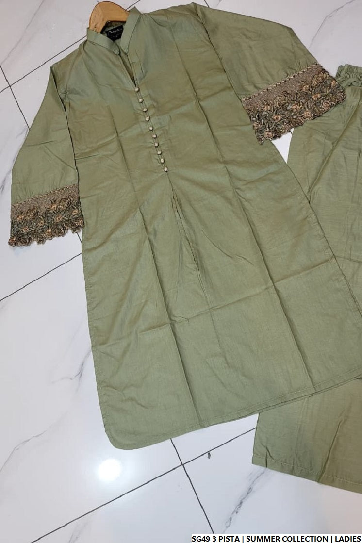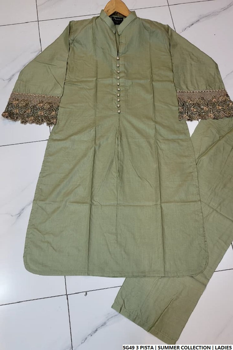 This lightweight 2-piece cotton suit features a traditional Gol Daman shirt paired with matching cotton trousers for a breathable and comfortable fit. Designed for everyday ease, the shirt length ranges from 41 to 43 inches, offering modest coverage with a relaxed silhouette. With a total weight of just 0.300 kg, this outfit is perfect for warmer weather and ideal for casual daily wear or light outings.