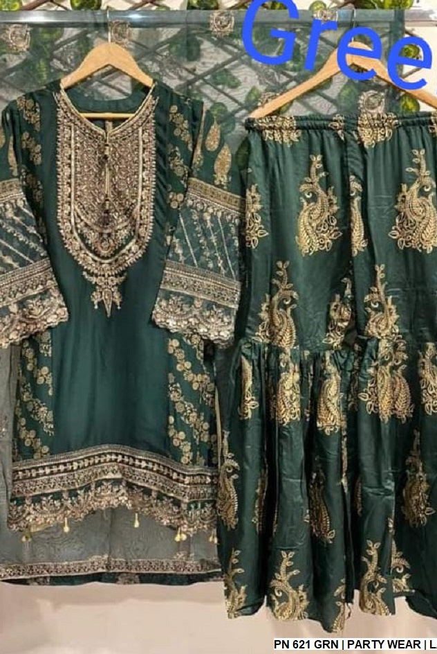 Crafted with high-quality fabrics, Party Wear All ensures comfort without compromising on style. From flowing frocks and designer suits to coordinated sets with matching dupattas or accessories, every piece in Party Wear All is thoughtfully designed for durability, elegance, and flair. Pair these outfits with matching jewelry, shoes, and handbags to create a complete look that exudes sophistication and charm.