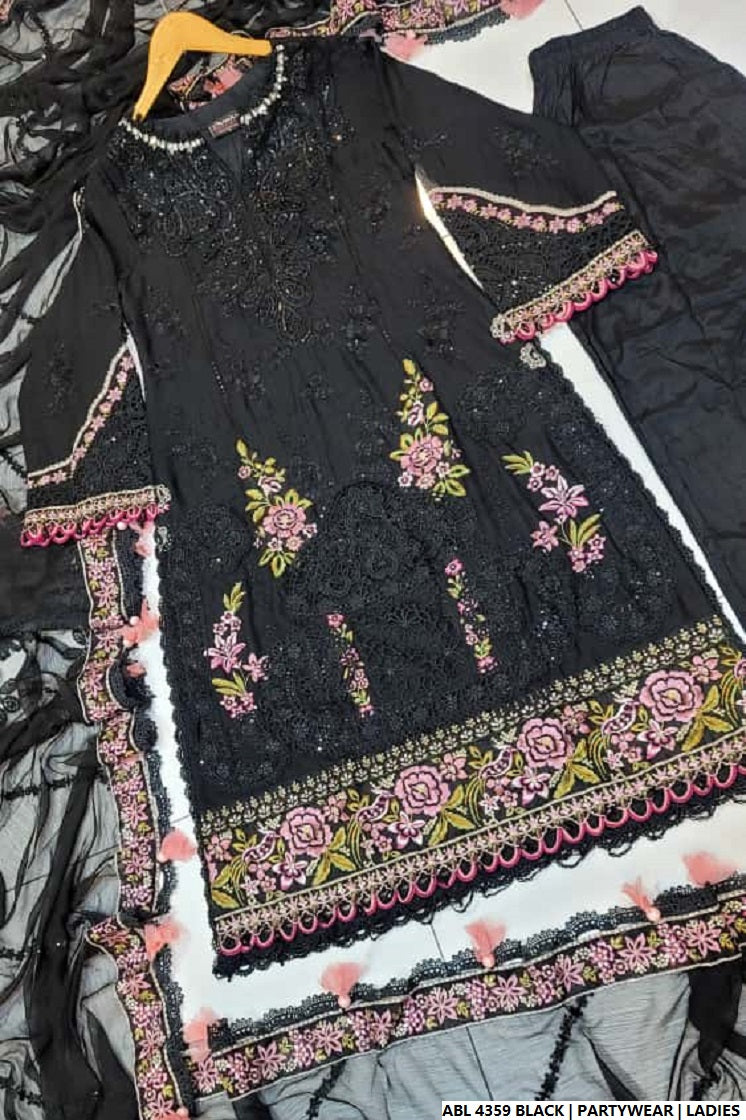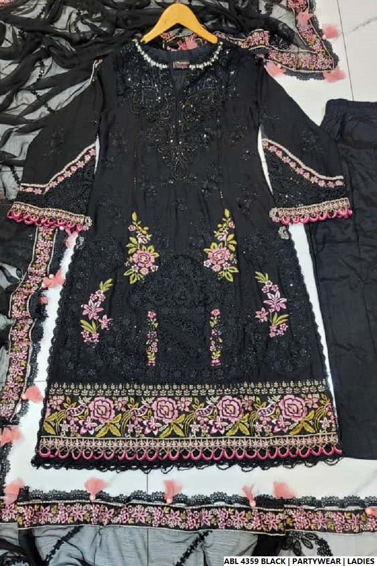 This sophisticated 3-piece outfit features a chiffon straight shirt with a flattering length of 46 to 48 inches, delivering an elegant and timeless look. It is paired with comfortable and sleek grip fabric trousers, and a matching chiffon dupatta that adds fluidity and grace to the ensemble. Weighing approximately 1.250 kg, this outfit offers a perfect blend of style, comfort, and quality—ideal for formal events, festive occasions, or traditional gatherings.