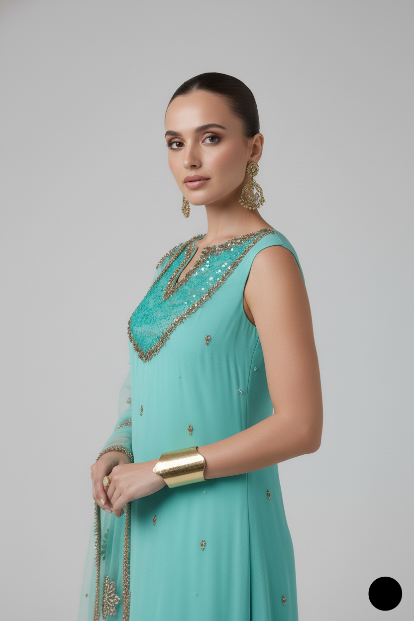 - Dupatta: Net (Embellished with Gotta Work)