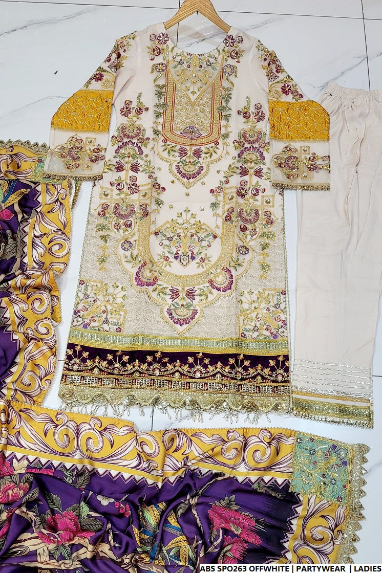 This elegant ensemble features a long straight shirt crafted from high-quality organza, offering a graceful and structured silhouette with a shirt length of 46 to 48 inches. It is paired with comfortable grip fabric trousers that ensure ease of movement without compromising on style. The highlight of this outfit is the digital silk dupatta, adding a vibrant, modern flair with its rich print and soft finish. Weighing 1.000 kg, this look is ideal for formal events, cultural gatherings, or festive occasions where refined style is a must.