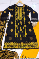 This elegant ensemble features a sophisticated A-line shirt made from luxurious Sussi Jacquard fabric, providing a refined and stylish look. The shirt is available in lengths of 36 or 38 inches, ensuring a flattering fit for various body types. The trousers, also crafted from high-quality Sussi fabric, offer both comfort and style. Complementing the shirt is a beautifully designed Sussi Jacquard dupatta, adding a touch of luxury to the outfit. With a total weight of 0.800 kg, this outfit strikes the perfect balance between comfort and a substantial, elegant feel. The intricate work details make this ensemble an excellent choice for any special occasion, blending tradition with contemporary style.