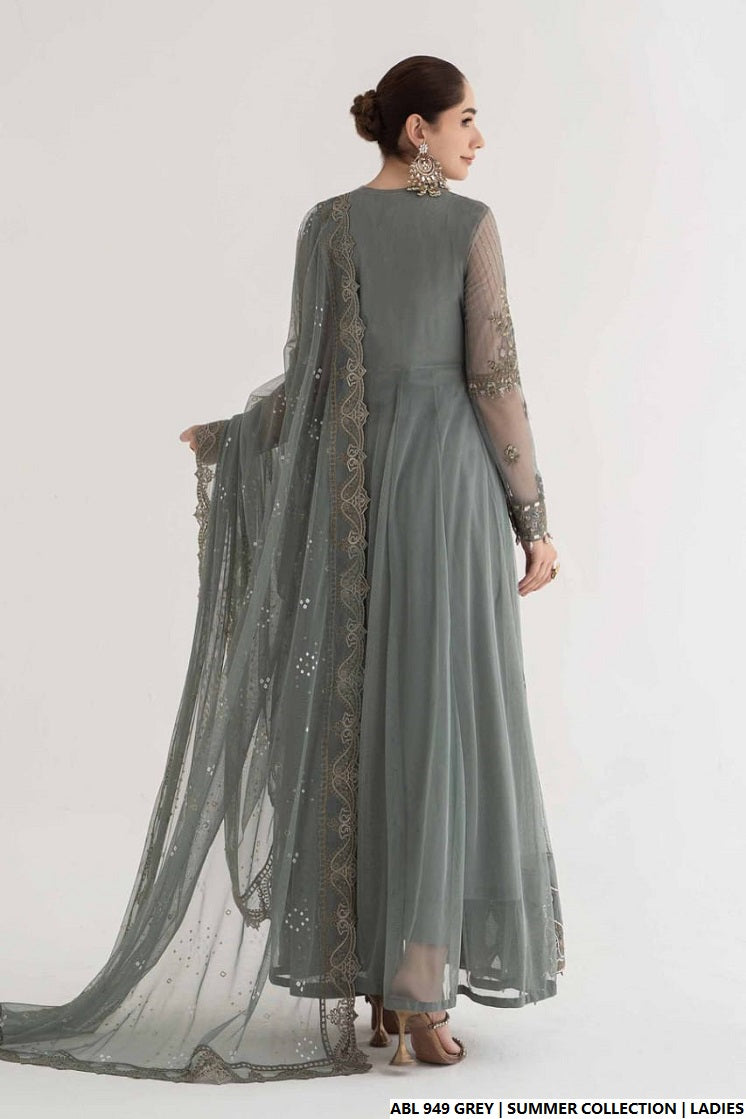 This elegant long frock-style outfit features a beautifully crafted net shirt, paired with comfortable cotton trousers for all-day wear. The shirt measures between 50 to 52 inches in length, offering a graceful and flowy silhouette ideal for formal or festive occasions. The ensemble is completed with a matching net dupatta that adds a sophisticated charm to the look. With a total weight of 1.150 kg, the outfit maintains a luxurious feel while still being easy to wear and manage.