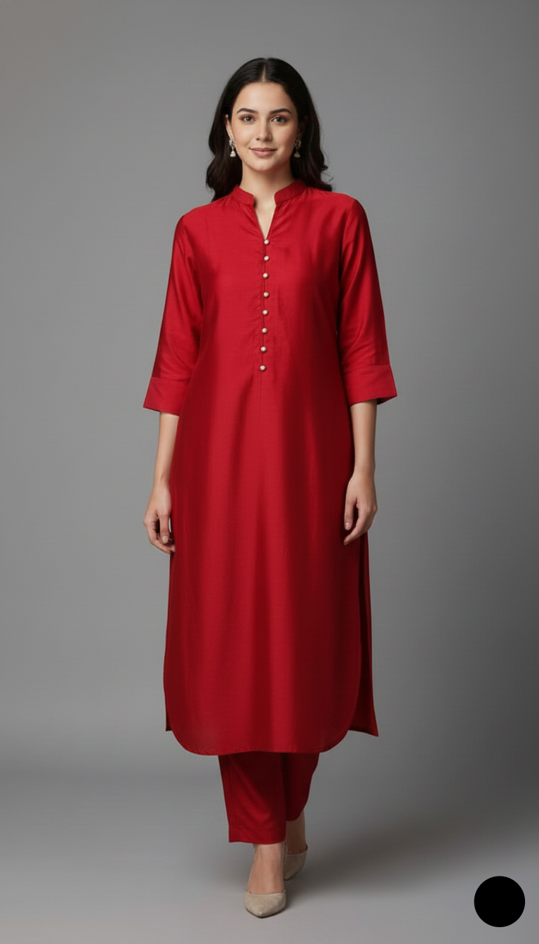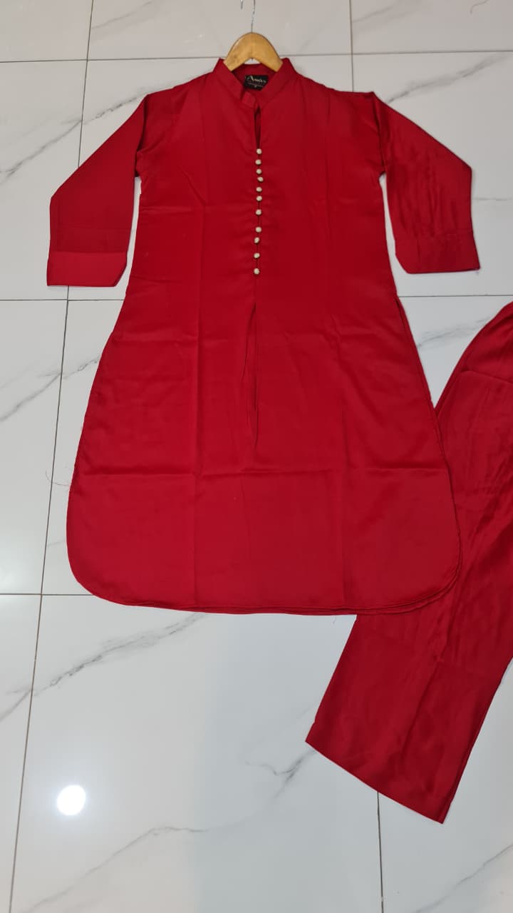 This elegant outfit is crafted from premium Silk fabric for both the shirt and the trouser, offering a luxurious feel and a graceful drape. Designed in a stylish Goal Daman Shirt pattern, the shirt length ranges between 42 to 44 inches, creating a refined and polished silhouette. With a total weight of 0.550 kg, this ensemble strikes the perfect balance between sophistication and comfort, making it ideal for festive gatherings, special occasions, or stylish everyday wear.