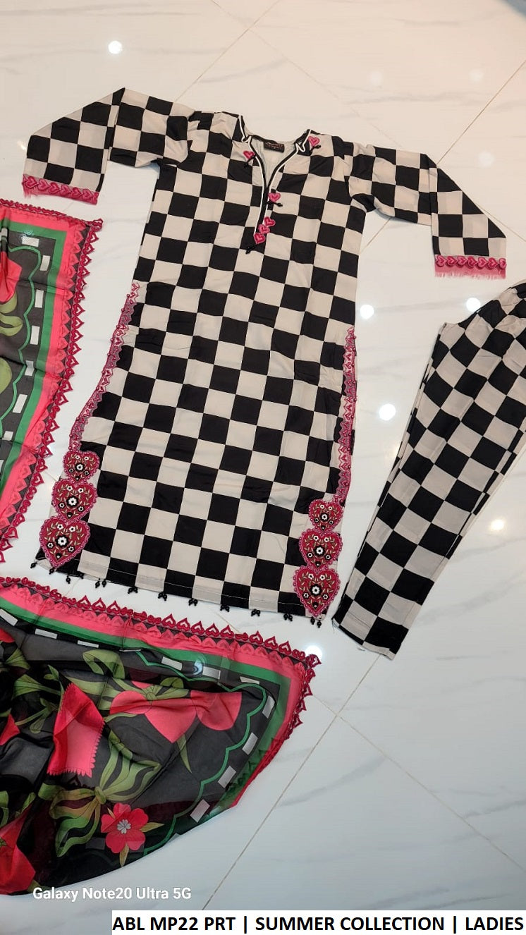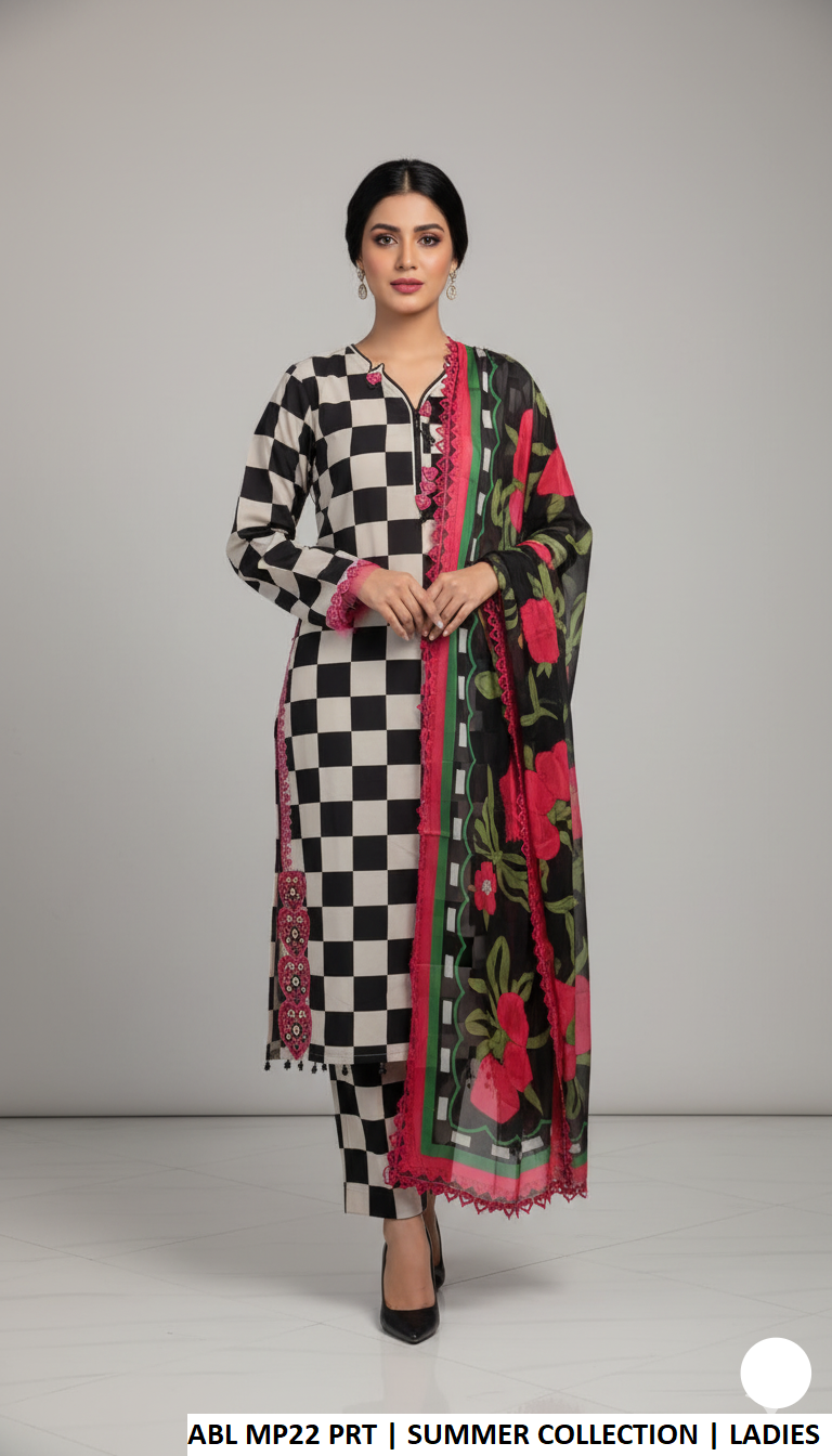 This elegant outfit features a premium Polly Lawn straight shirt paired with a matching Polly Lawn trouser and a beautifully designed digital print silk dupatta. The straight shirt style offers a classic and sophisticated look, perfect for casual gatherings and everyday wear. With a shirt length ranging from 46 to 48 inches and a comfortable weight of 0.60 KG, this outfit provides both style and comfort for a graceful appearance.
