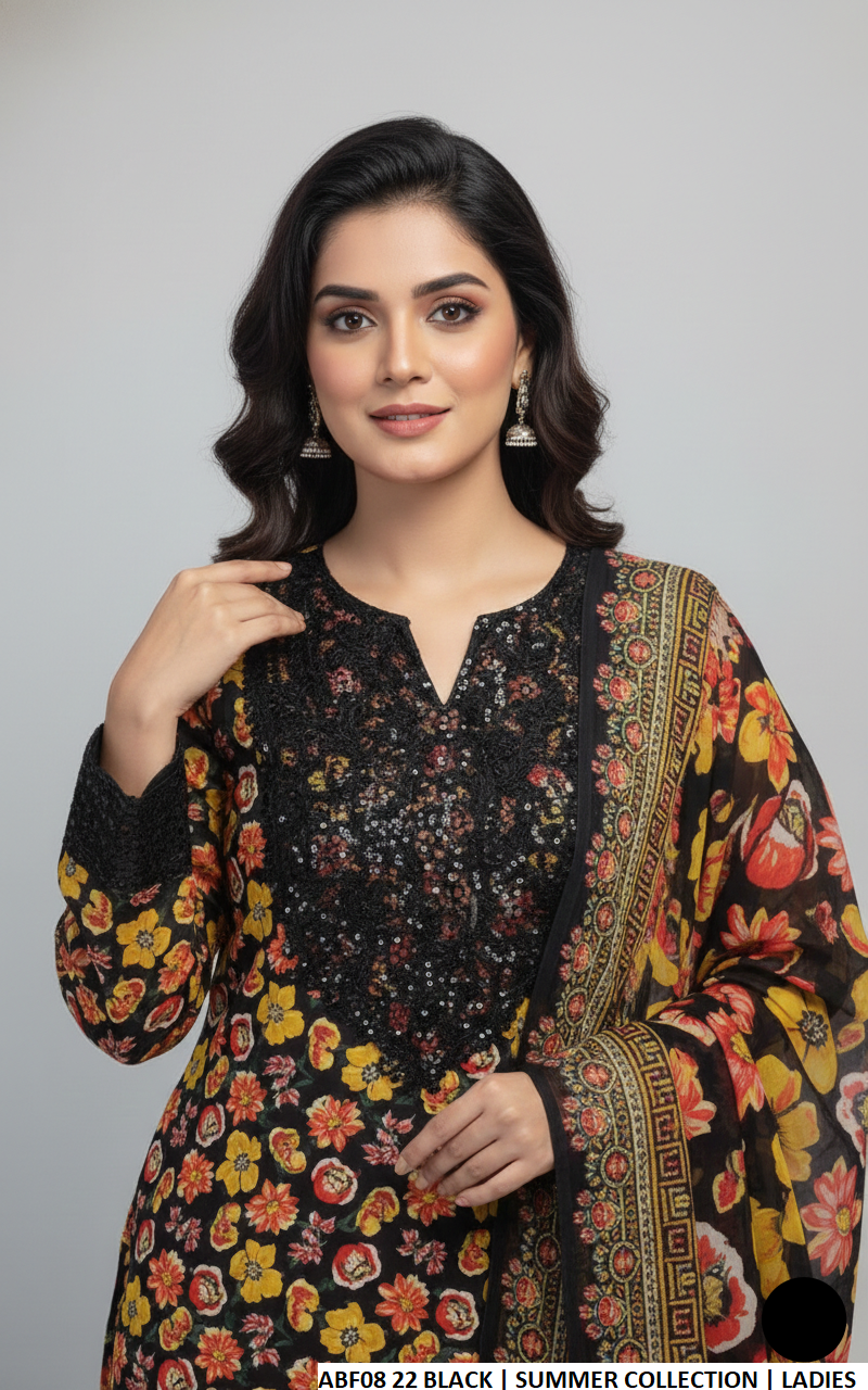 This beautiful long frock outfit is crafted from soft and breathable lawn fabric, paired with matching lawn plazo trousers for a comfortable and stylish fit. The digital print dupatta adds a vibrant and contemporary touch, enhancing the overall appeal. With a shirt length of 44 to 46 inches and a lightweight 0.500 kg, this ensemble is perfect for casual gatherings, festive occasions, or summer wear.