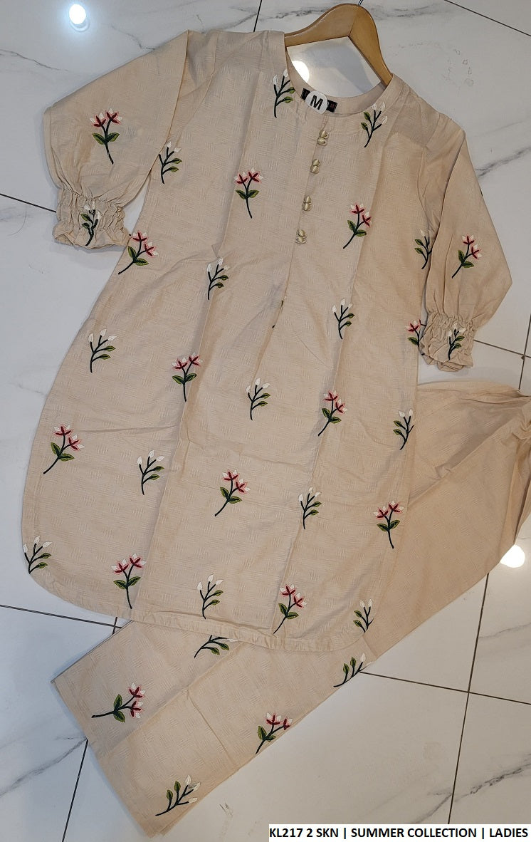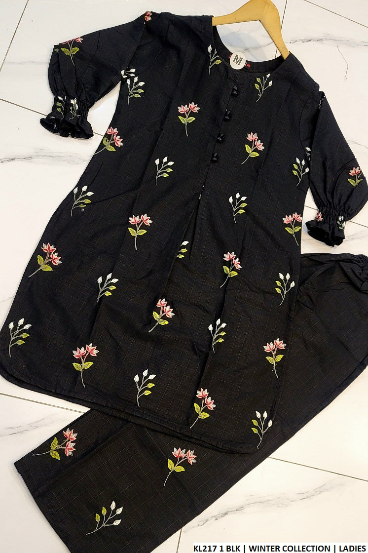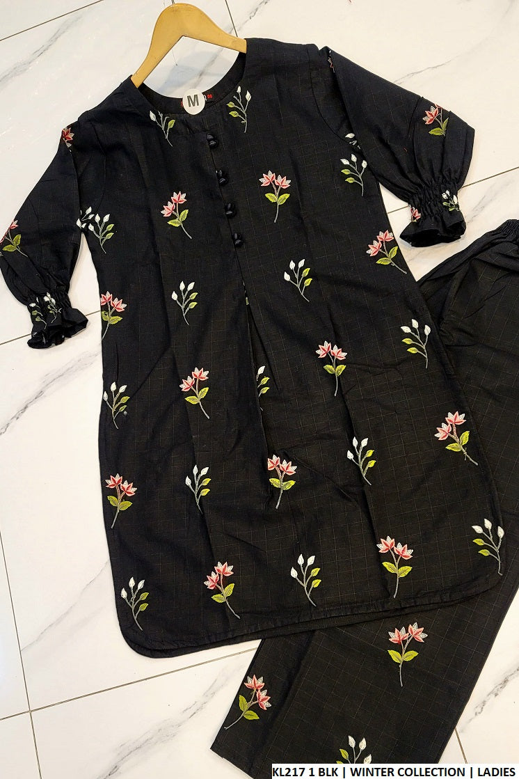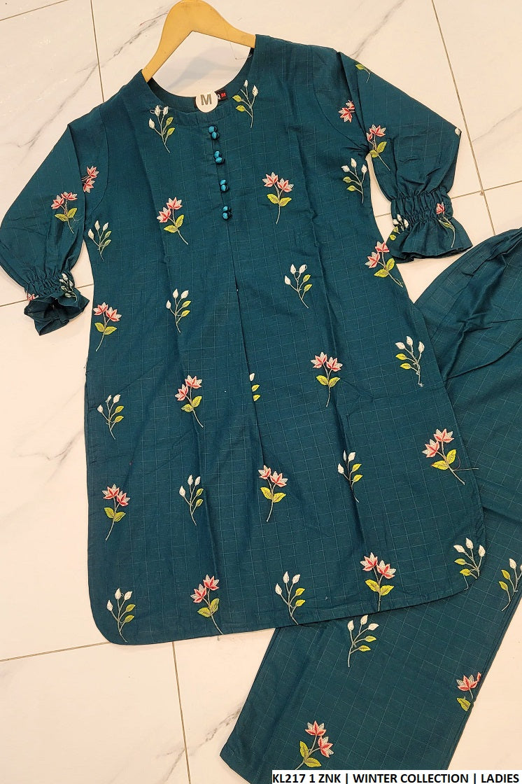 This stylish outfit features a cotton Gool Daman shirt (35/37 inches) paired with matching cotton trousers and a two-piece dupatta. Weighing just 0.400 kg, it is lightweight and comfortable.