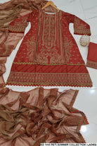 - This elegant outfit is crafted from premium lawn fabric, offering both comfort and breathability. The A-line shirt, available in lengths of 43 or 45 inches, creates a flattering and graceful silhouette. The trousers, also made from lawn fabric, provide a coordinated and stylish appearance. Adding a touch of sophistication, the ensemble includes a delicate chiffon dupatta, enhancing its overall charm. With a total weight of just 0.500 kg, this lightweight outfit is perfect for warm-weather wear, offering a perfect balance of style and comfort. The intricate work details further elevate its appeal, making it ideal for casual and semi-formal occasions.