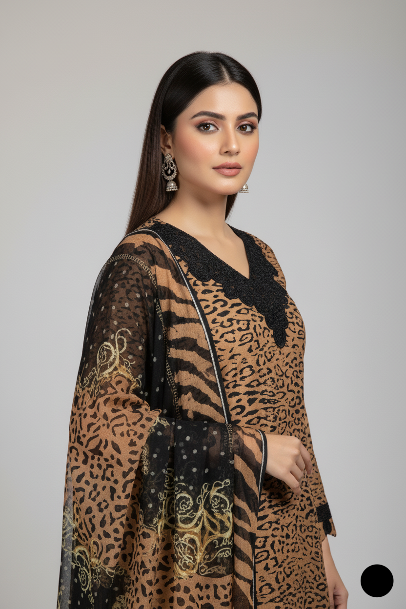 This elegant ensemble features a straight shirt crafted from soft, breathable lawn fabric, paired with a matching lawn trouser for all-day comfort. The outfit is completed with a beautifully printed digital chiffon dupatta, adding a touch of sophistication to the overall look. With a shirt length of 43 to 45 inches and a total weight of 0.550 kg, this outfit is perfect for casual to semi-formal occasions, combining both style and comfort effortlessly.