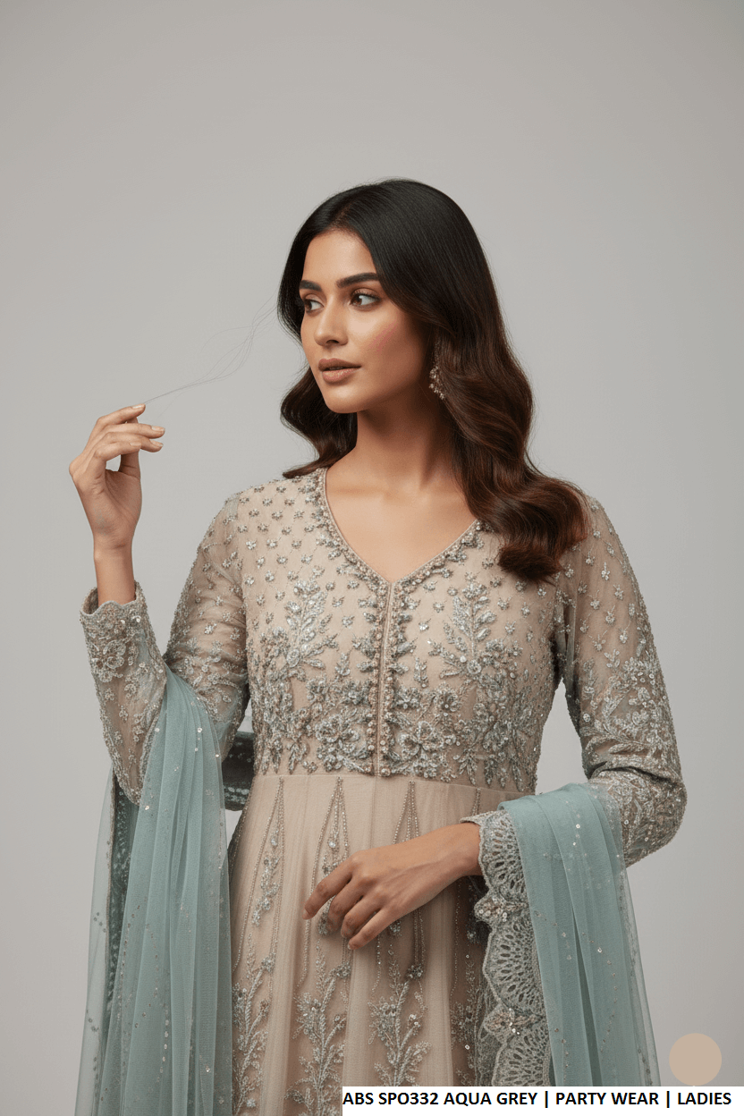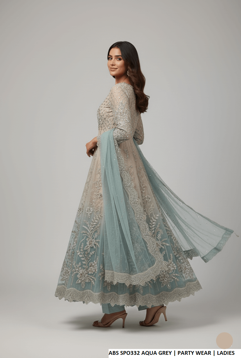 This luxurious outfit features a soft net shirt paired with a sturdy grip trouser and a graceful organza dupatta. Designed in a long maxi style, it creates an elegant and flowing silhouette. With a shirt length ranging from 54 to 56 inches, the ensemble offers a sophisticated and modest look. Weighing approximately 1.500 kg, it delivers a premium feel, making it ideal for formal and festive occasions.