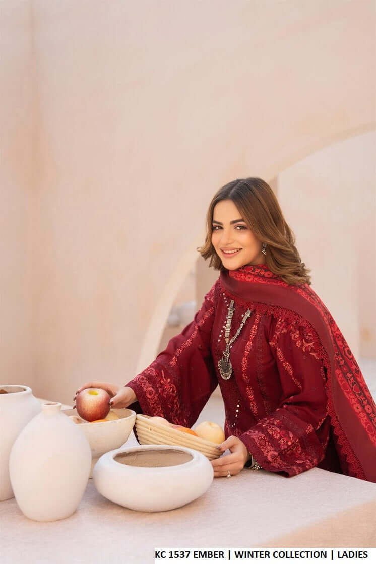 This stylish winter outfit is crafted from premium Dhanak fabric for both the shirt and trouser, ensuring warmth and comfort throughout the season. It is paired with a beautifully designed printed shawl that adds a trendy and elegant touch. Featuring a modern shirt with palazzo style, the shirt length of 42/44 inches offers a flattering silhouette. With an approximate weight of 1.050 kg, this outfit is ideal for everyday wear as well as casual gatherings.