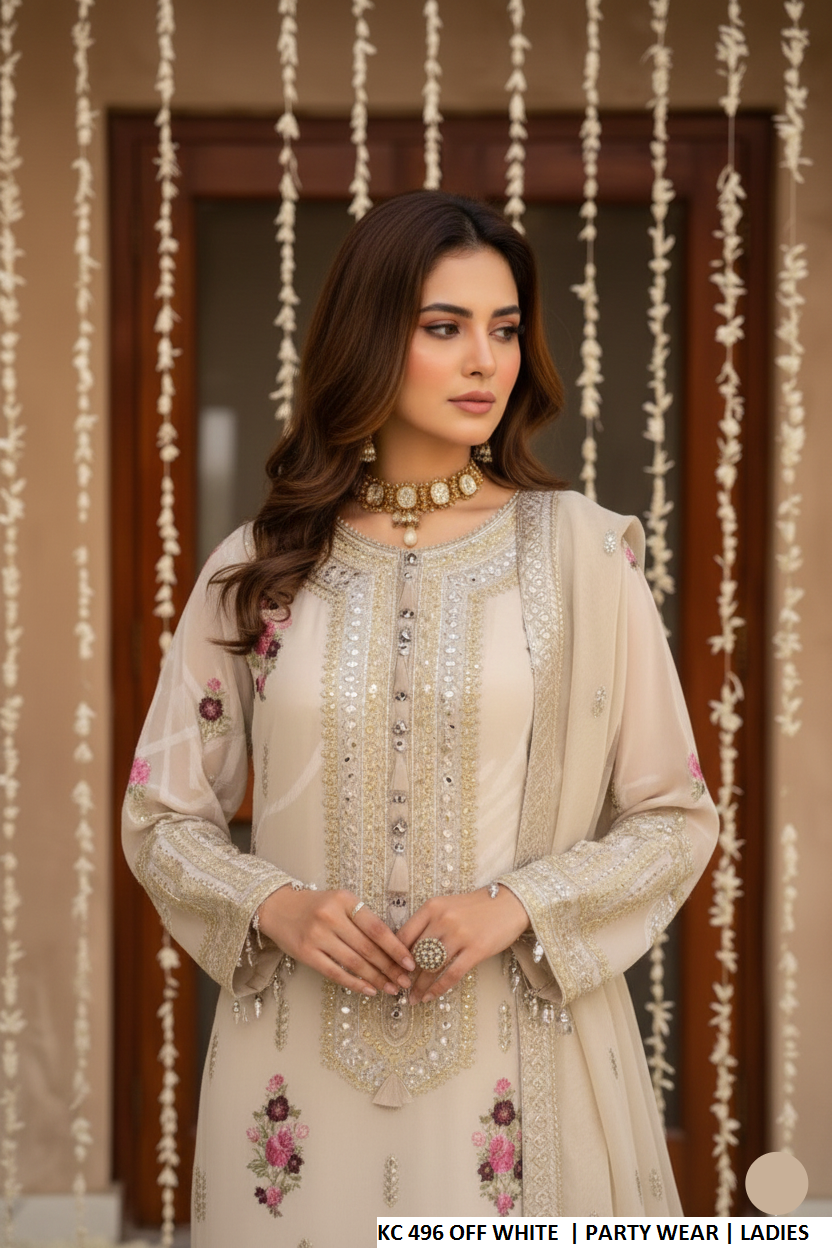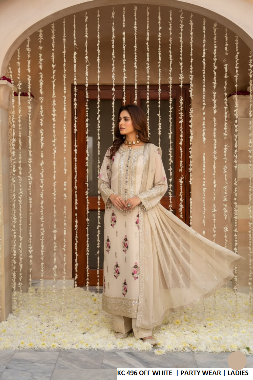 This graceful 3-piece outfit features a flowing chiffon shirt designed in a straight-cut silhouette, paired with a comfortable grip plazo for a refined and modern look. The ensemble is completed with a crinkle chiffon dupatta that adds texture and elegance to the overall design. Styled as a straight shirt with plazo and a shirt length of 48/50 inches, this outfit offers a flattering fit suitable for formal events and festive occasions. With an approximate weight of 1.000 kg, it ensures both comfort and sophistication throughout the day.
