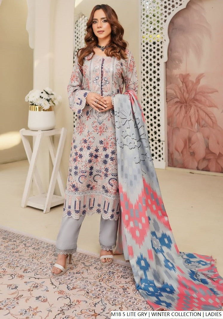 This elegant outfit features a straight shirt style made from premium Dhanak fabric, offering both warmth and style for cooler seasons. The shirt length measures 42 to 44 inches, ensuring a flattering silhouette. It is paired with Dhanak trousers for a coordinated look and complemented by a luxurious wool shawl dupatta, adding a touch of traditional sophistication. With a total weight of 0.700 KG, this ensemble balances comfort with quality, making it a perfect choice for casual or semi-formal occasions during the fall and winter months.