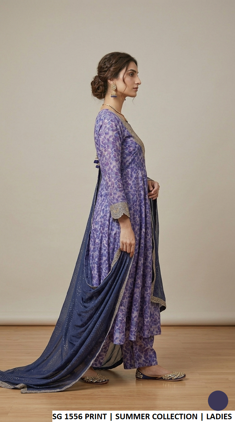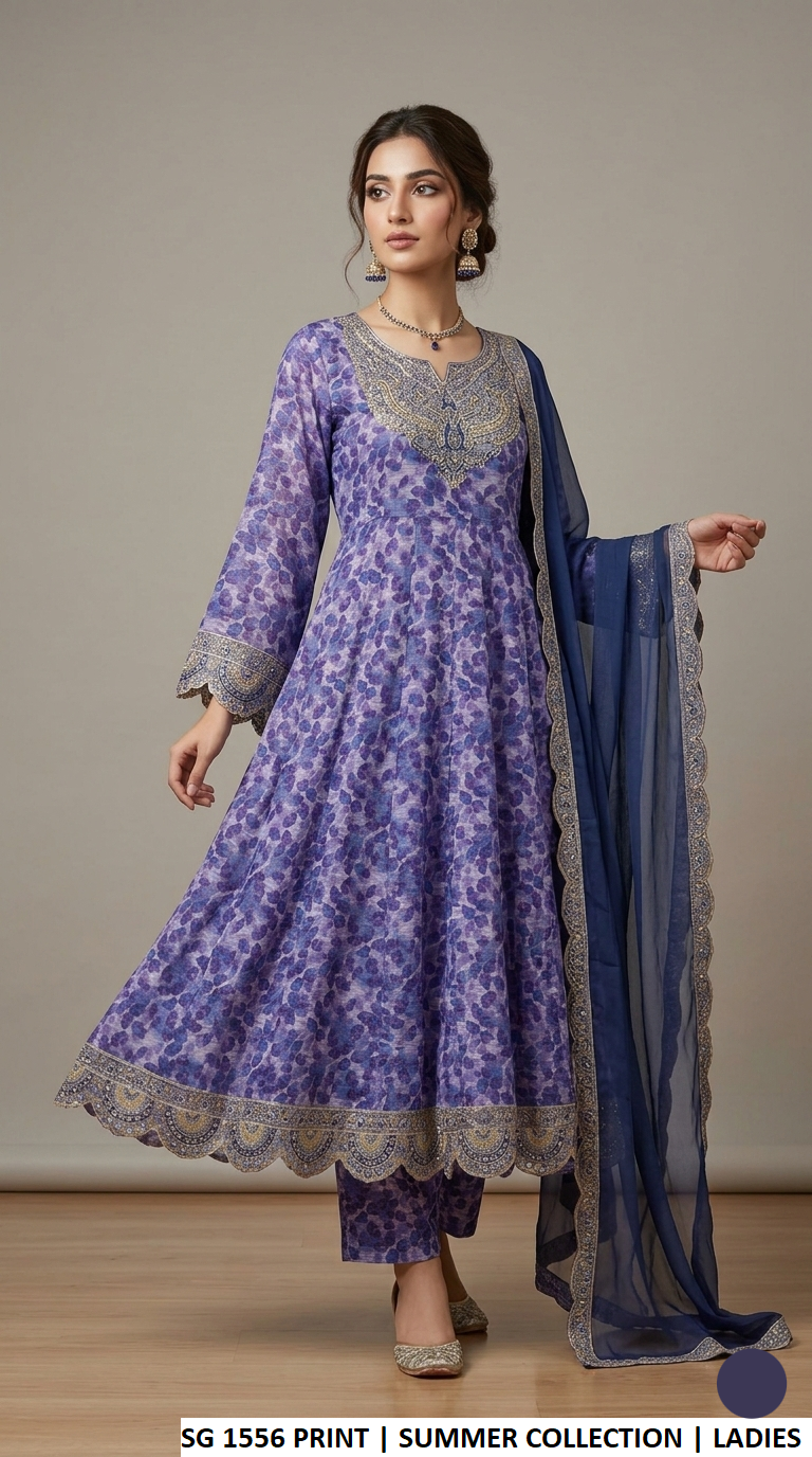 This elegant outfit features a breezy lawn frock paired with matching lawn trousers, creating a comfortable and stylish look perfect for warm weather. The soft chiffon dupatta adds a delicate and graceful touch, completing the ensemble with sophistication. With a shirt length of 47 to 49 inches and a lightweight feel of just 0.500 kg, this outfit is ideal for casual outings, summer events, and festive gatherings.
