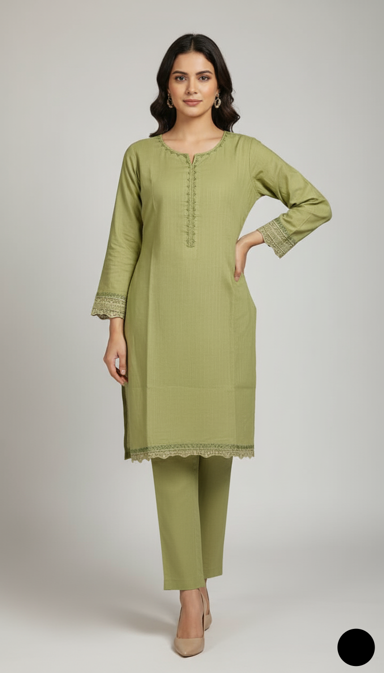 Step into effortless style with this lightweight 2-piece Dhanak outfit, featuring a straight shirt and matching trousers. Designed for comfort and everyday elegance, the shirt comes in a length of 36 to 38 inches, making it perfect for a contemporary, modest look. Paired with a coordinating two-piece dupatta, the ensemble strikes the right balance between traditional and modern. Weighing just 0.400 kg, it's ideal for casual outings, day-to-day wear, or seasonal transitions.