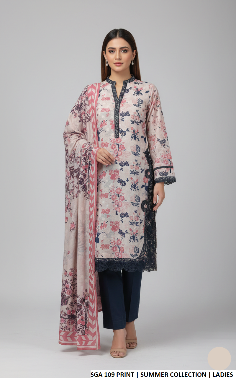 This beautiful outfit is designed with a premium lawn shirt paired with comfortable cotton trousers and a matching lawn dupatta. Styled as a straight shirt, it offers a graceful and modest silhouette suitable for everyday and semi-formal wear. The shirt length ranges from 42 to 44 inches, providing an elegant fall, while the total weight of 0.450 kg ensures a comfortable and breathable wearing experience.