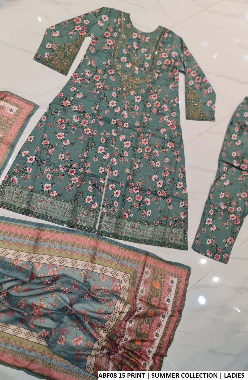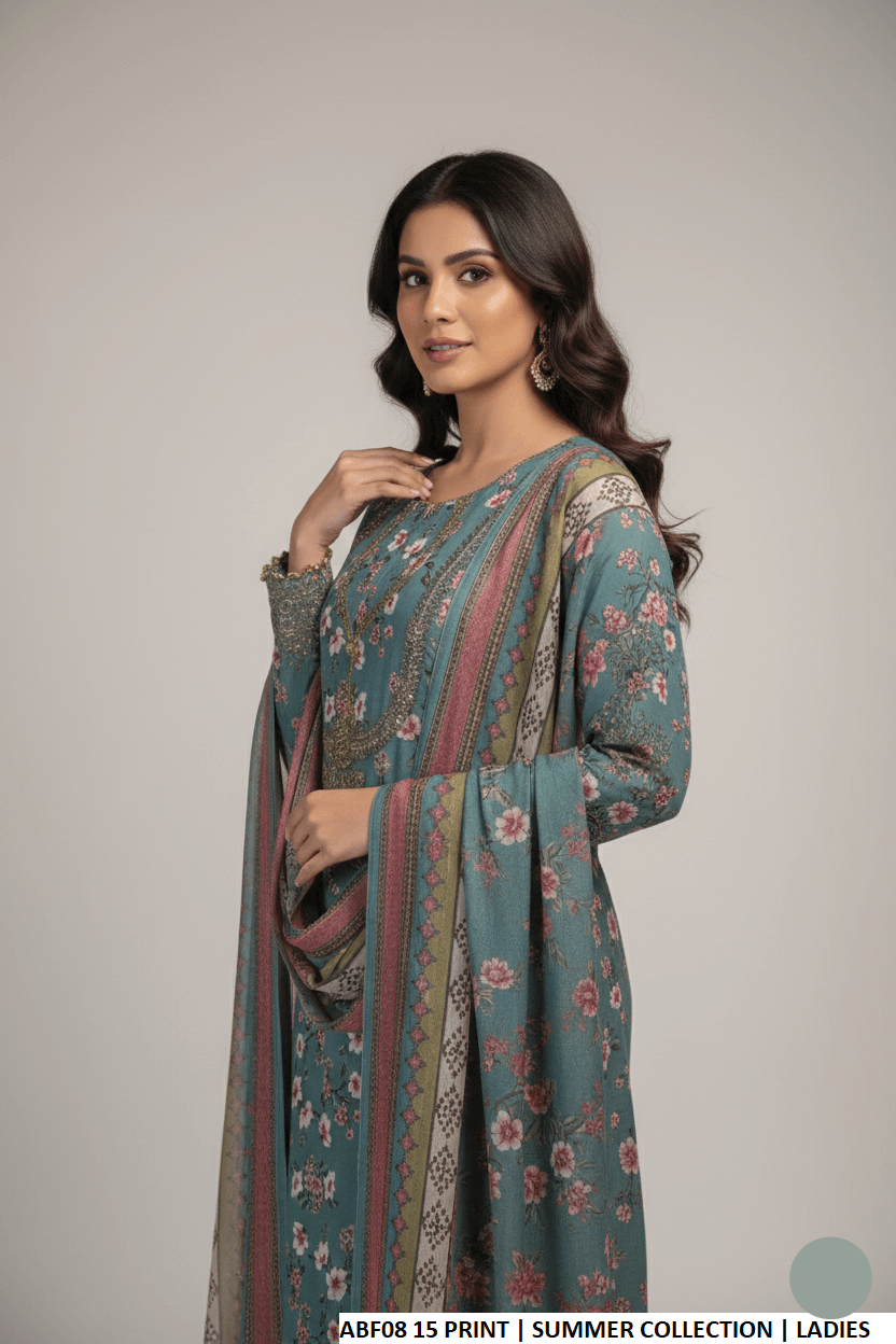 This elegant outfit features a soft cotton long frock paired with matching cotton trousers and a digitally printed dupatta. Designed for a flowing, graceful silhouette, it offers both comfort and style. With a shirt length of 45 to 47 inches and a lightweight feel of approximately 0.550 kg, this ensemble is perfect for casual gatherings, daily wear, or festive occasions.