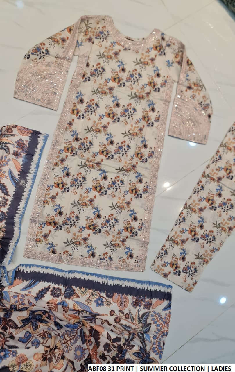 This graceful outfit is made from premium lawn fabric for both the shirt and trouser, offering excellent breathability and comfort. Designed in a classic straight shirt style, it is complemented by a vibrant digital print dupatta that adds a stylish touch. With a shirt length of 42 to 44 inches and a lightweight feel of 0.450 kg, this ensemble is ideal for daily wear and summer-friendly styling.