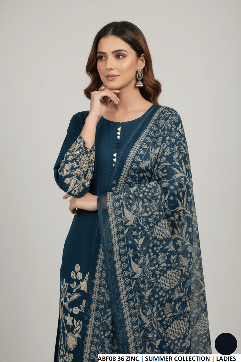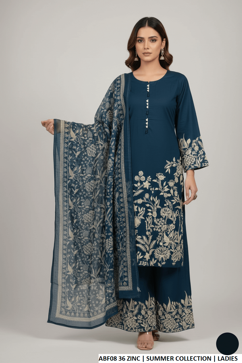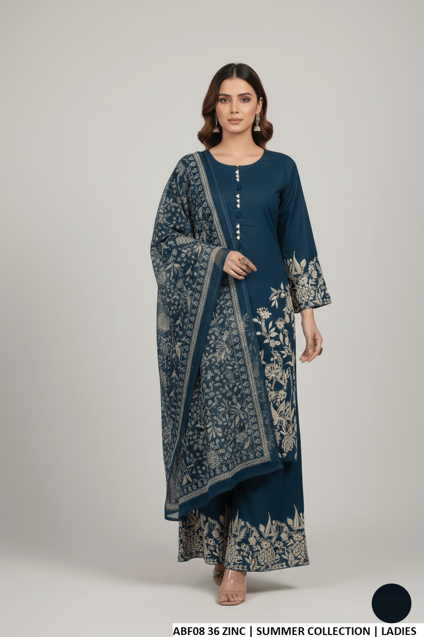 This lightweight outfit features a breathable lawn fabric shirt paired with a matching lawn plazo for all-day comfort. The digitally printed dupatta adds a touch of elegance and style. Designed in a straight shirt silhouette with a shirt length of 39/41 inches, this ensemble provides a flattering and graceful fit. With an approximate weight of 0.550 KG, it is easy to wear and perfect for casual or semi-formal occasions.