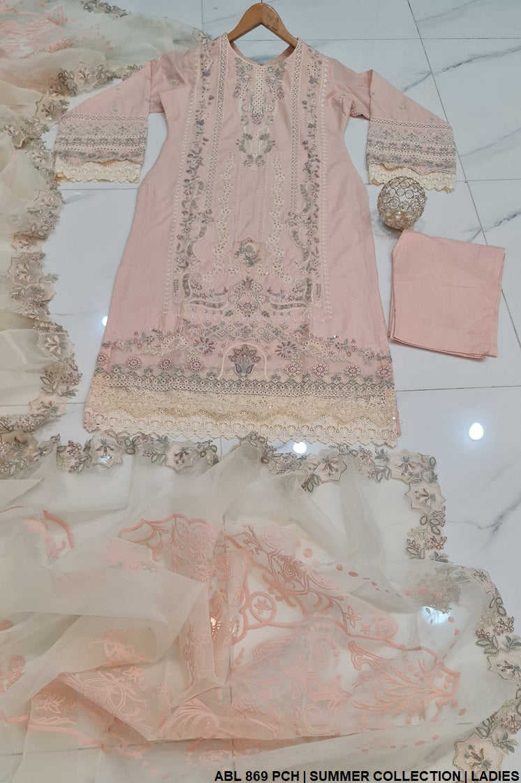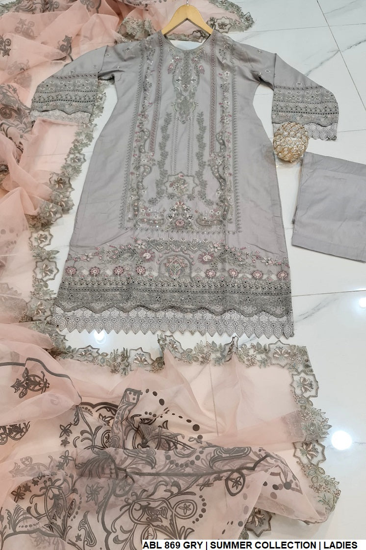 - This stylish straight shirt is made from high-quality cotton fabric, offering comfort and breathability for everyday wear. It is paired with matching cotton trousers for a cohesive look. The outfit is completed with a luxurious organza dupatta, adding a touch of elegance and sophistication. With a shirt length of 44 to 46 inches, it provides a flattering fit. Weighing just 0.750 kg, this lightweight ensemble is ideal for both casual and semi-formal occasions, combining simplicity with grace for a timeless look.