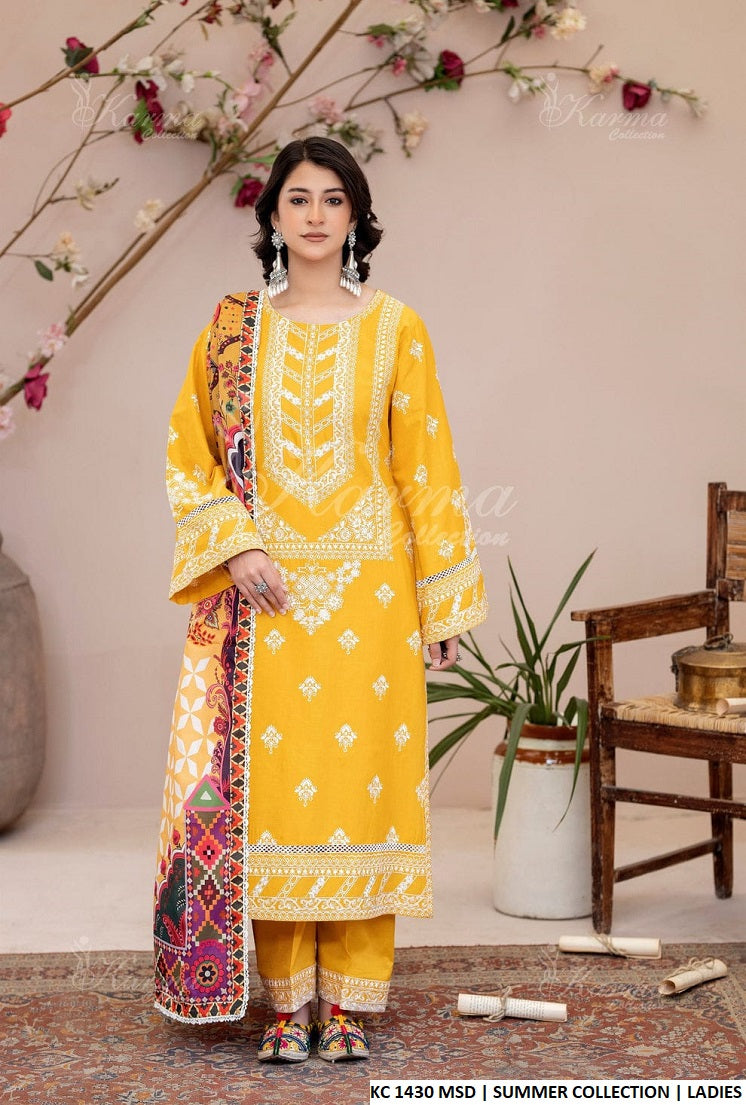 This stylish and comfortable outfit includes a straight long shirt made from breathable cotton fabric, paired with matching cotton trousers for a relaxed yet polished look. With a shirt length ranging from 44 to 46 inches, it offers a graceful silhouette suitable for everyday wear or casual outings. The digitally printed dupatta adds a vibrant, artistic touch to the ensemble, giving it a modern edge. Weighing only 0.650 KG, this lightweight outfit ensures ease of movement while keeping your style effortlessly elegant.