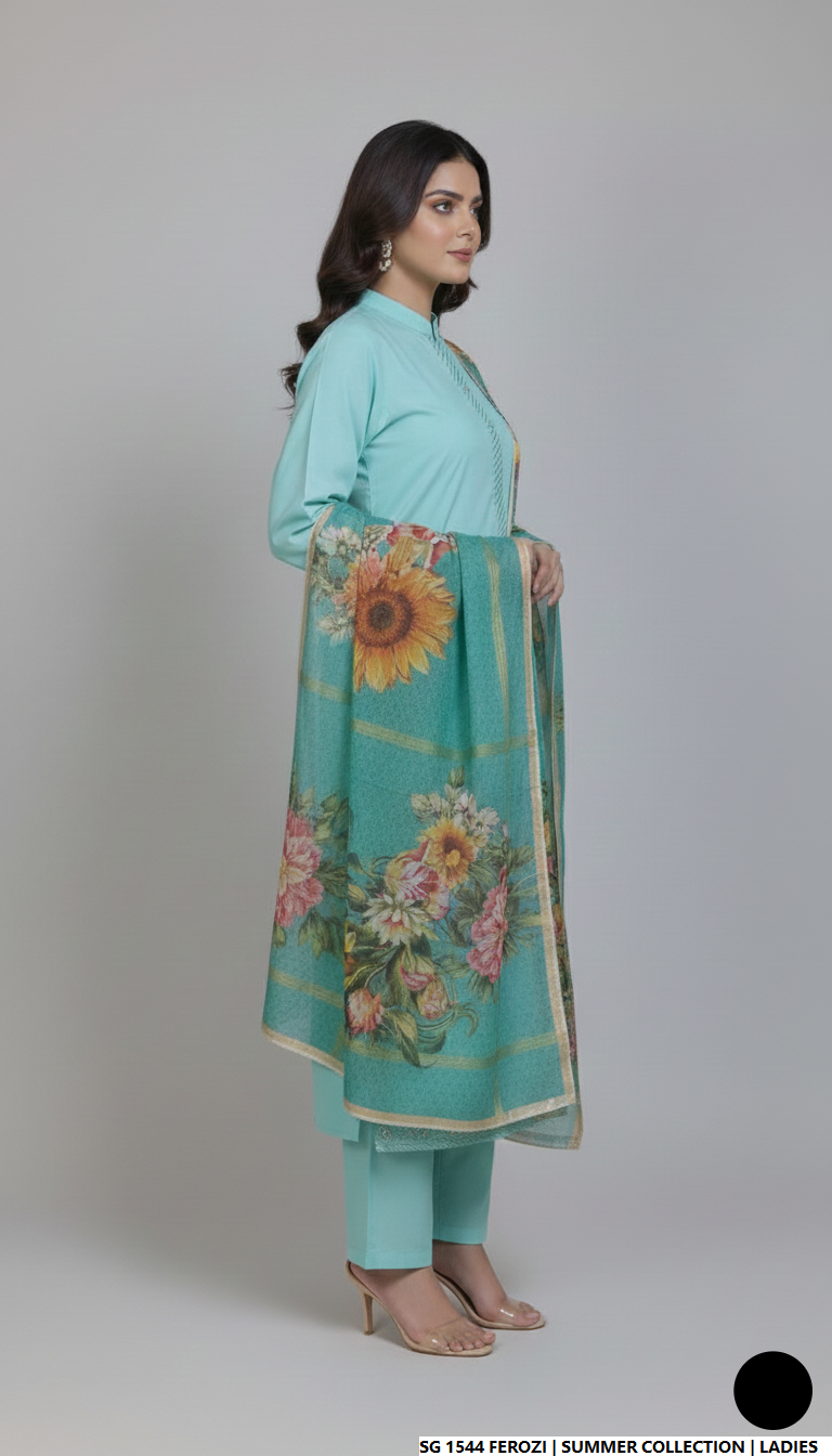 This elegant outfit features a breathable cotton shirt paired with comfortable cotton trousers, making it ideal for everyday wear. The lawn dupatta adds a soft and lightweight touch to the ensemble, balancing comfort with style. Designed in a straight shirt silhouette with a 43/45 length, this outfit provides a refined and graceful look. With a total weight of 0.500 kg, it offers both durability and ease for a stylish and comfortable experience.
