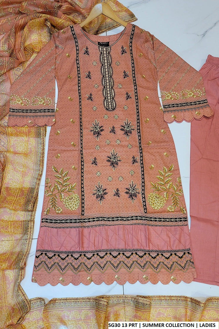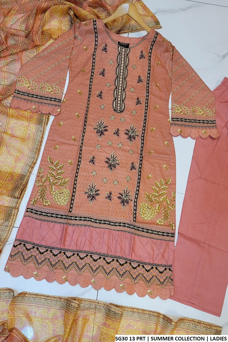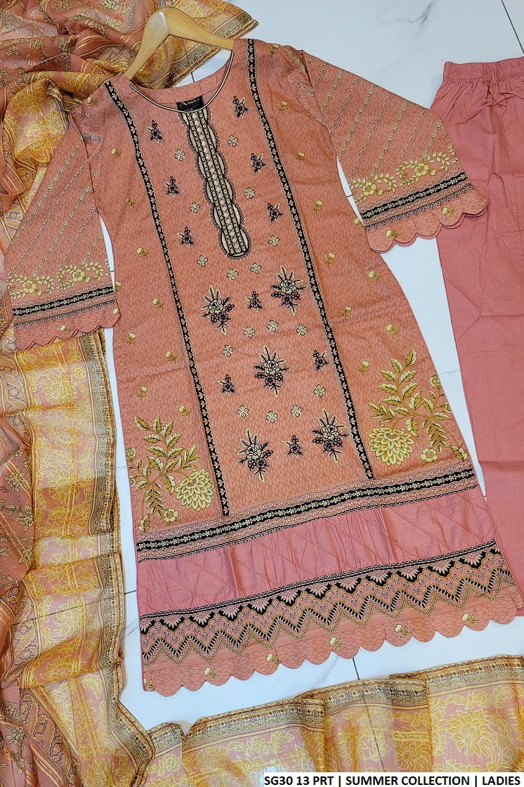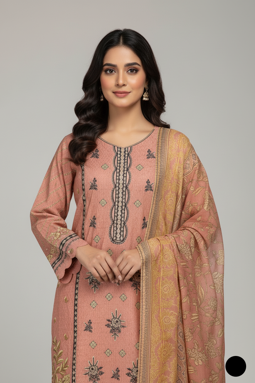 Stay cool and effortlessly stylish with this classic 3-piece lawn suit, featuring a straight-cut shirt with a generous length of 44 to 46 inches. Made entirely from premium lawn fabric, both the shirt and trousers ensure breathable comfort for warmer days. The coordinated lawn dupatta ties the look together, offering a graceful and traditional finish. With a lightweight profile of just 0.450 kg, this set is ideal for casual gatherings, everyday wear, or even light festive occasions.