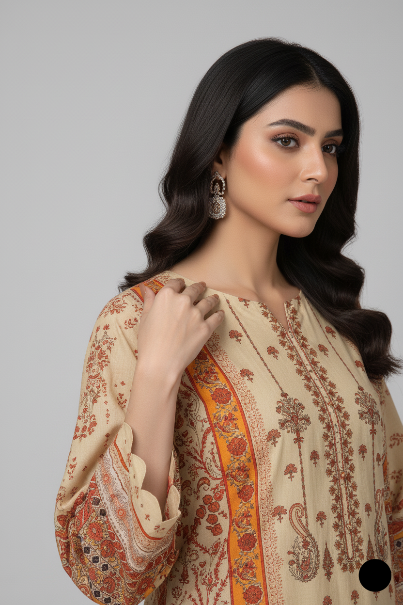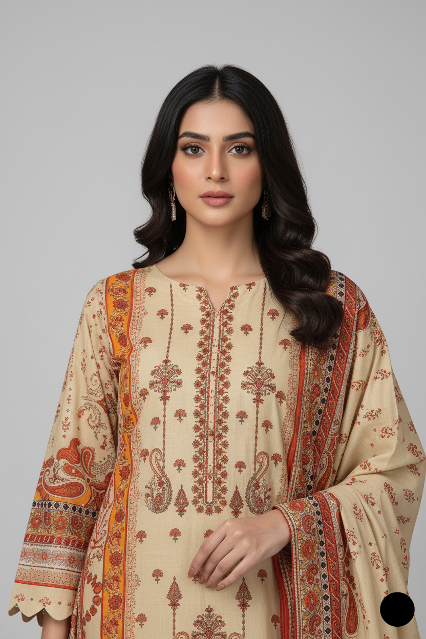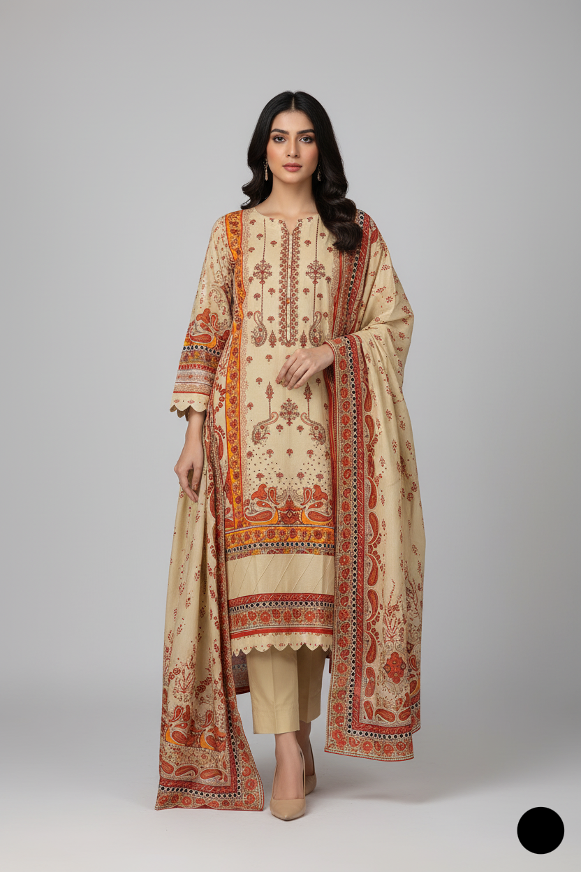 This outfit features a stylish straight shirt made from high-quality lawn fabric, paired with matching lawn trousers for a comfortable yet elegant look. The dupatta is crafted from digital lawn, enhancing the overall appeal with its vivid prints. The shirt length is available in two sizes, 44 and 46, providing options for a perfect fit. Weighing just 0.450 KG, this ensemble is lightweight, making it perfect for everyday wear or special occasions.
