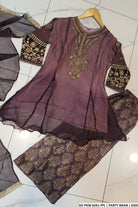 - This elegant ensemble features a chiffon frock paired with jamawar plazo and a matching chiffon dupatta. Weighing just 0.450 kg, it offers a graceful and stylish look.