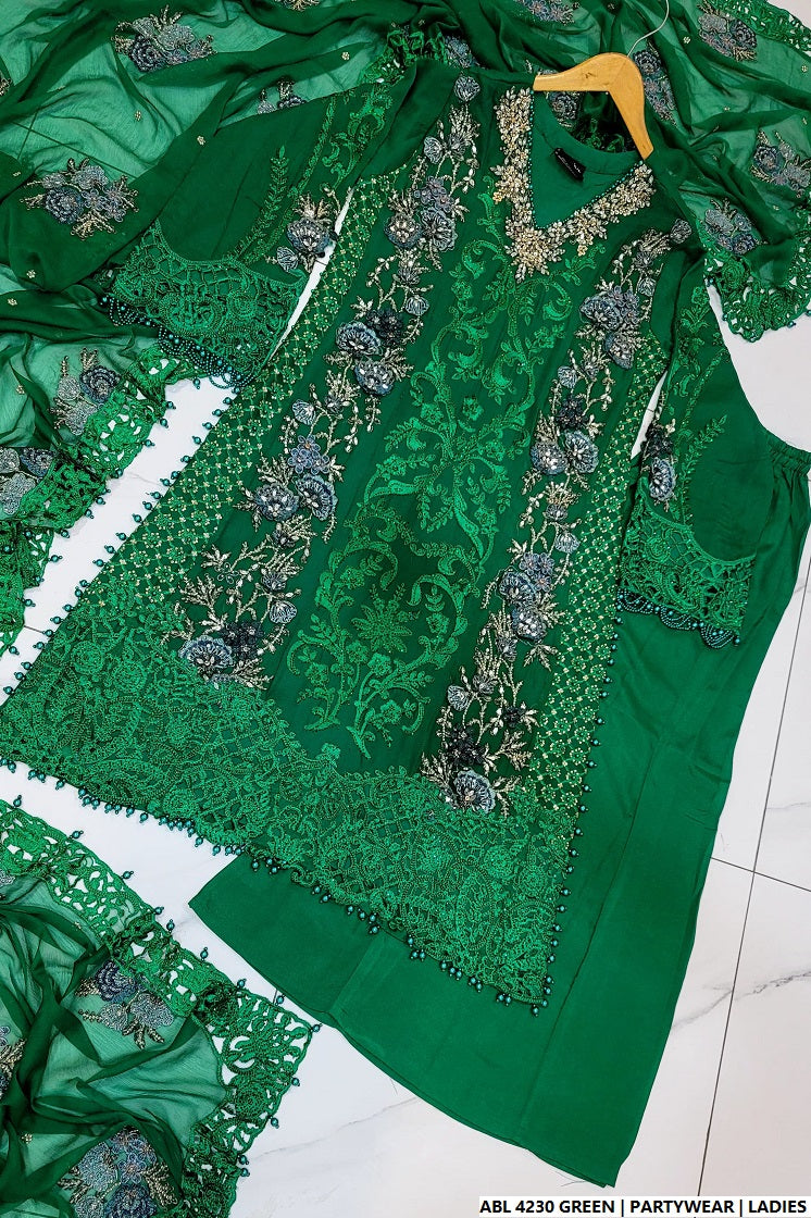 This elegant outfit features a chiffon A-line shirt, paired with soft grip plazo trousers and a matching chiffon dupatta. With a shirt length of 42 to 44 inches, the design offers a flowy and flattering silhouette that's perfect for both festive and formal occasions. Weighing 1.550 kg, the outfit has a graceful drape and substantial feel, offering comfort and sophistication in equal measure. A timeless addition to your wardrobe for any special event.