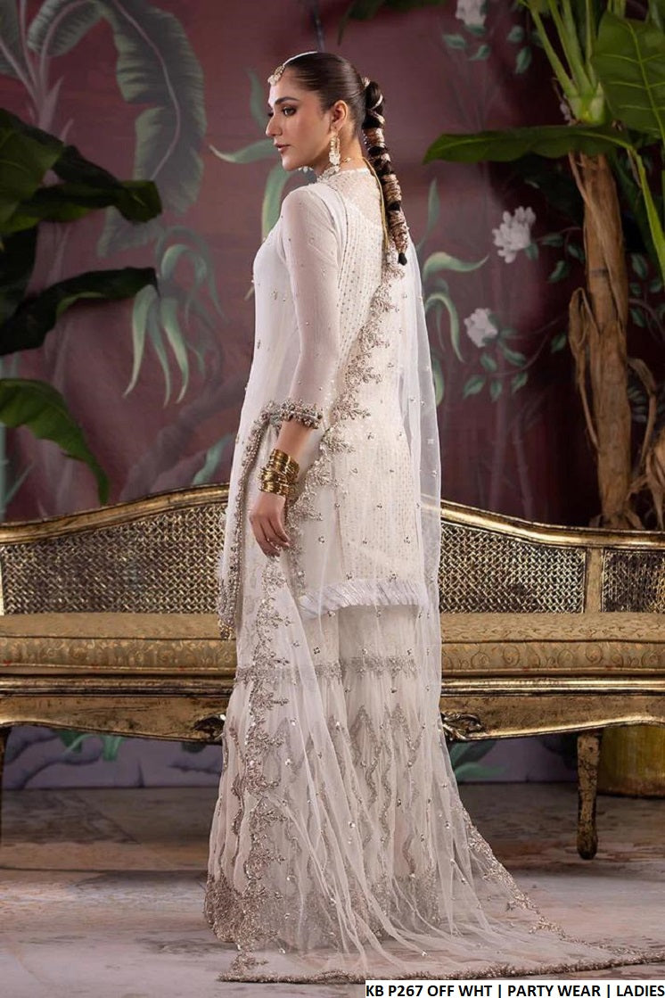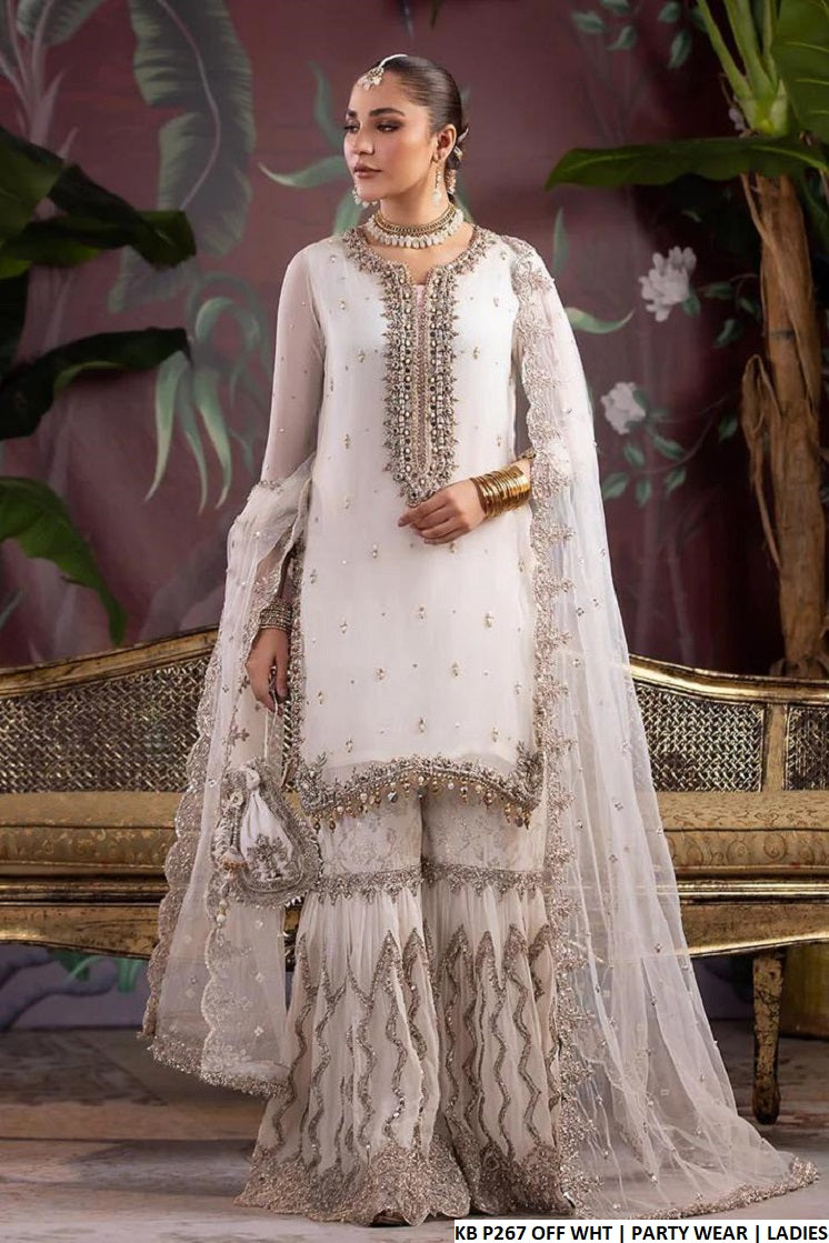 - Shirt: Crinkle Chiffon (Hand Embroidered with Kora, Dabka, Stones and Gotta)