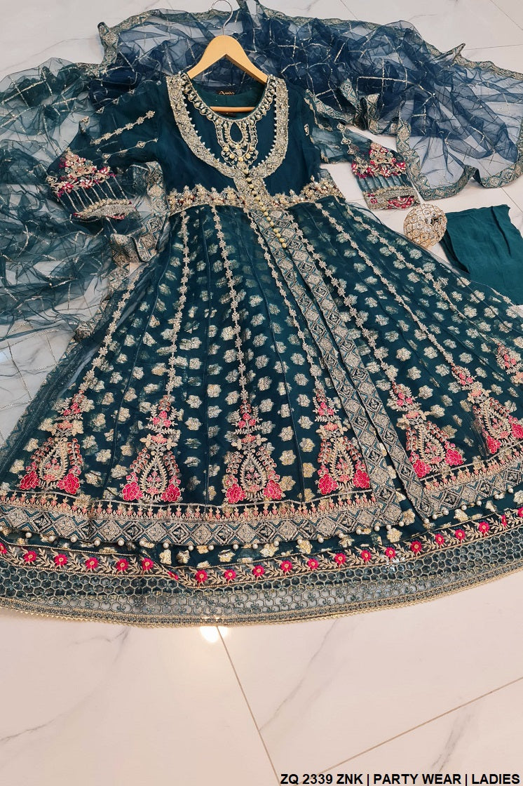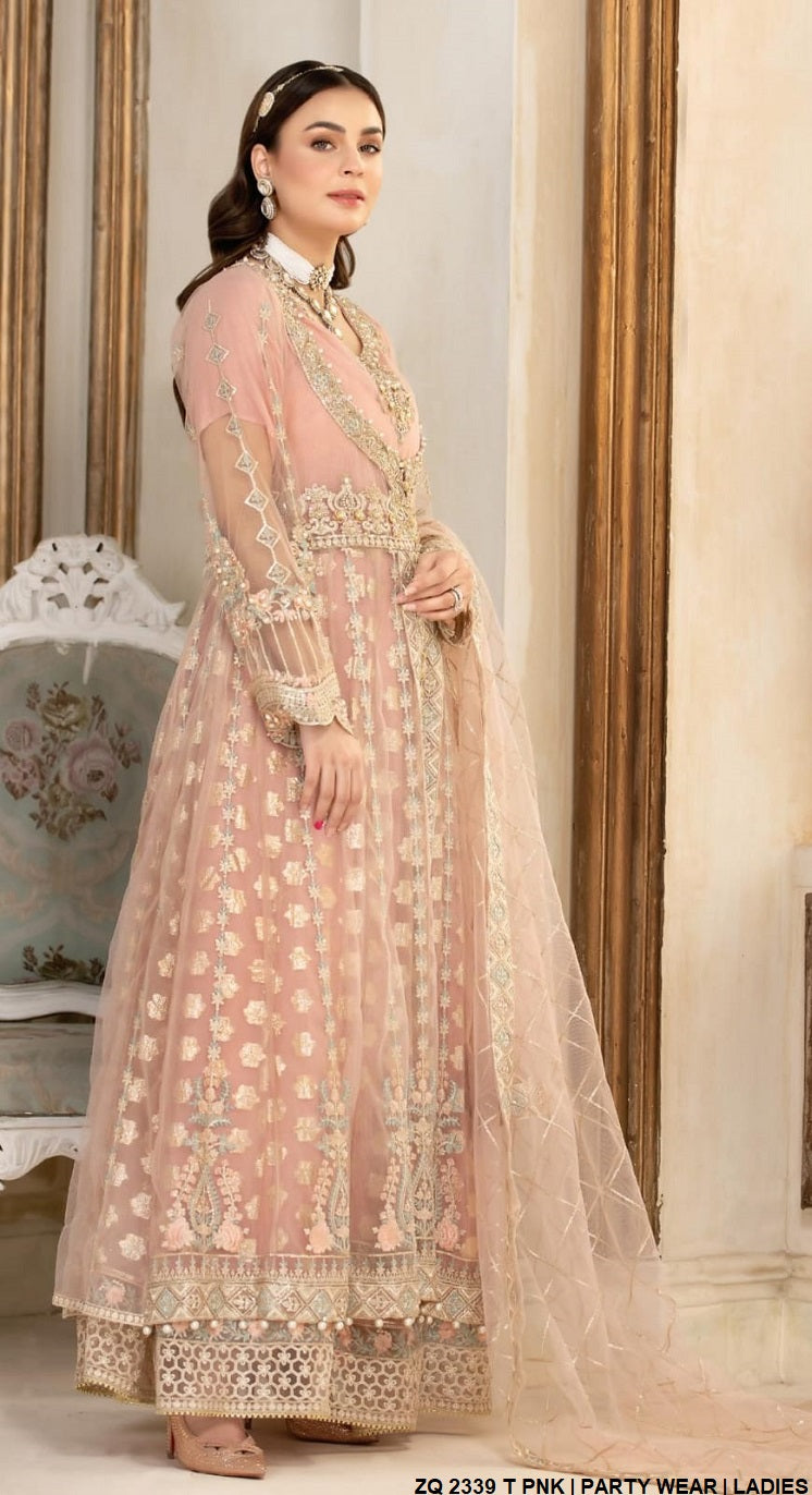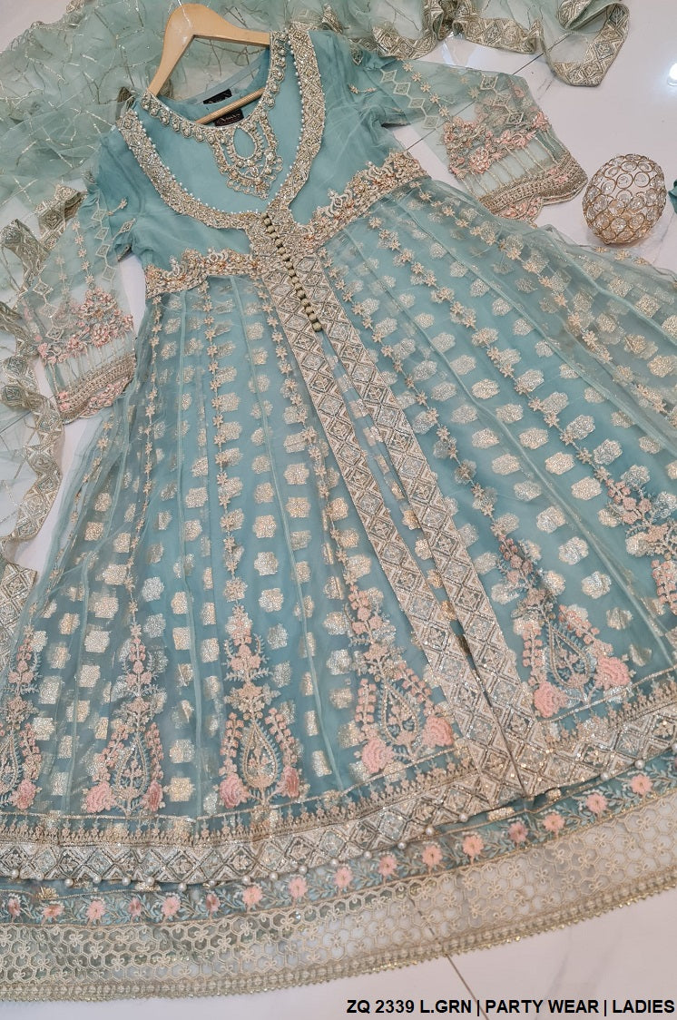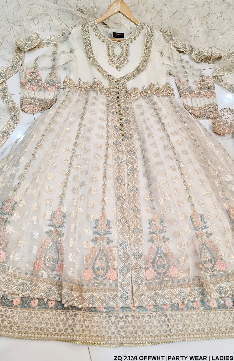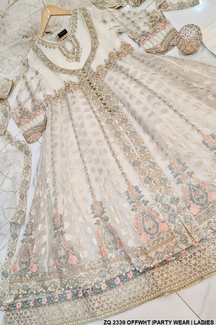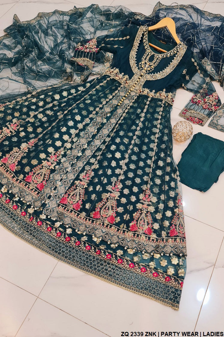 1. This stunning outfit features a net fabric shirt, paired with viscose trousers and a net dupatta. Designed in an open gown style maxi, the shirt length measures 50 to 52 inches. The total weight of the ensemble is 1.450 kg, offering an elegant and graceful look, perfect for any special occasion.