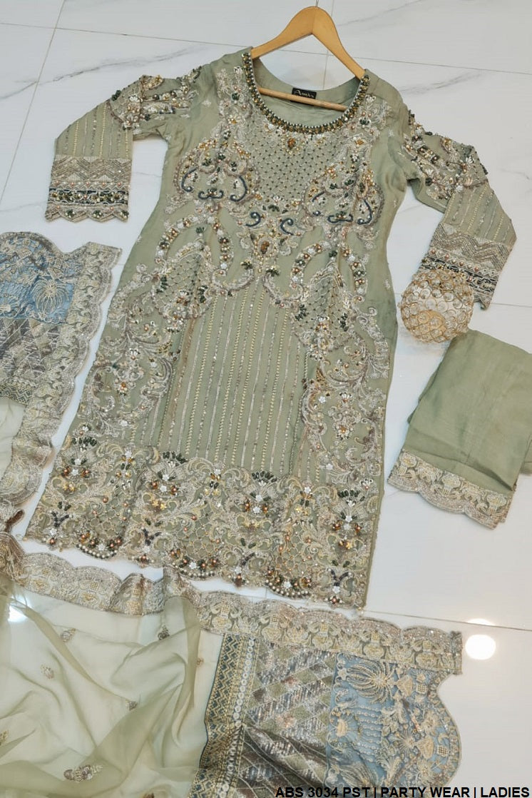 - This sophisticated ensemble features a straight shirt crafted from chiffon, offering a lightweight and graceful drape. With a length of 41 to 43 inches, the shirt provides a refined and elegant look. It is paired with trousers made from grip fabric, ensuring a structured yet comfortable fit. Completing the outfit is a delicate organza dupatta, adding a touch of luxury and charm. Weighing approximately 1.250 kg, this ensemble is designed to combine style and comfort, making it a perfect choice for any occasion