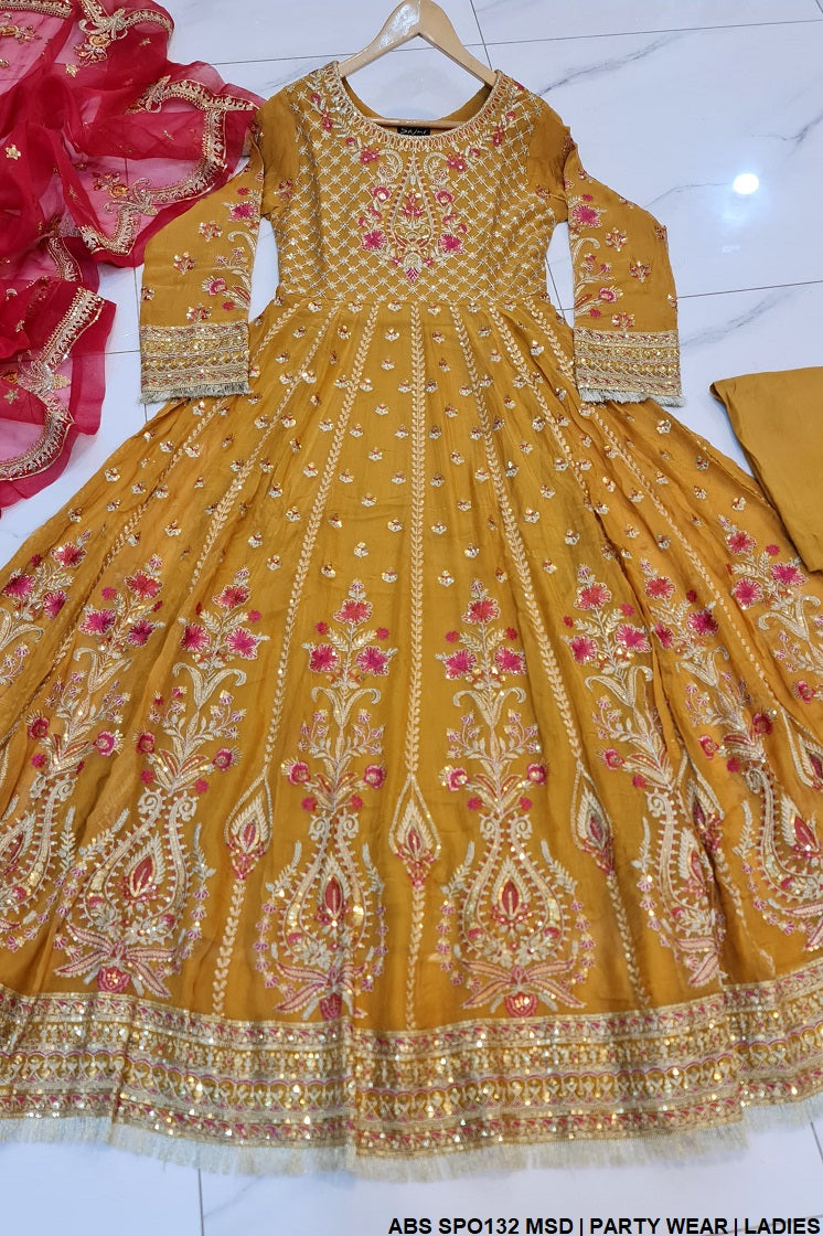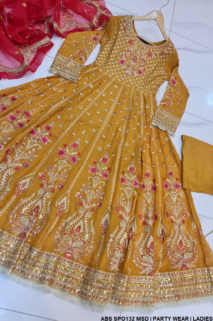 - This graceful outfit features a chiffon shirt paired with grip fabric trousers, offering a perfect balance of softness and structure. The dupatta is made from organza, adding an elegant and delicate touch to the ensemble. The style is a long frock, providing a flowing and sophisticated silhouette. Available in two shirt lengths, 57 inches and 59 inches, it offers a customizable fit for different preferences. Weighing 1.050 kg, this ensemble is both lightweight and comfortable, making it an ideal choice for formal or festive occasions while maintaining an air of elegance and charm.