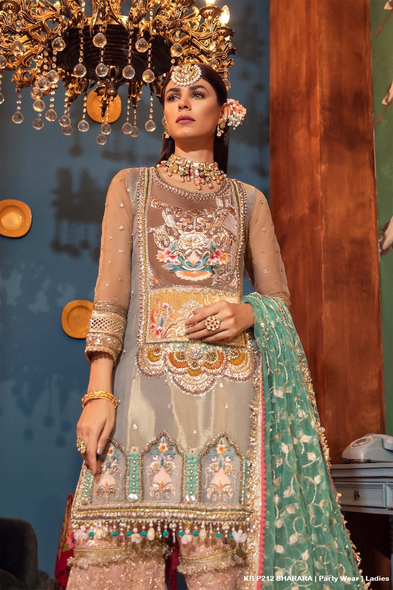 - Shirt : Pure Resham Mesuri (Heavily Hand Emboroidered with Gota, Kora, Dabka).