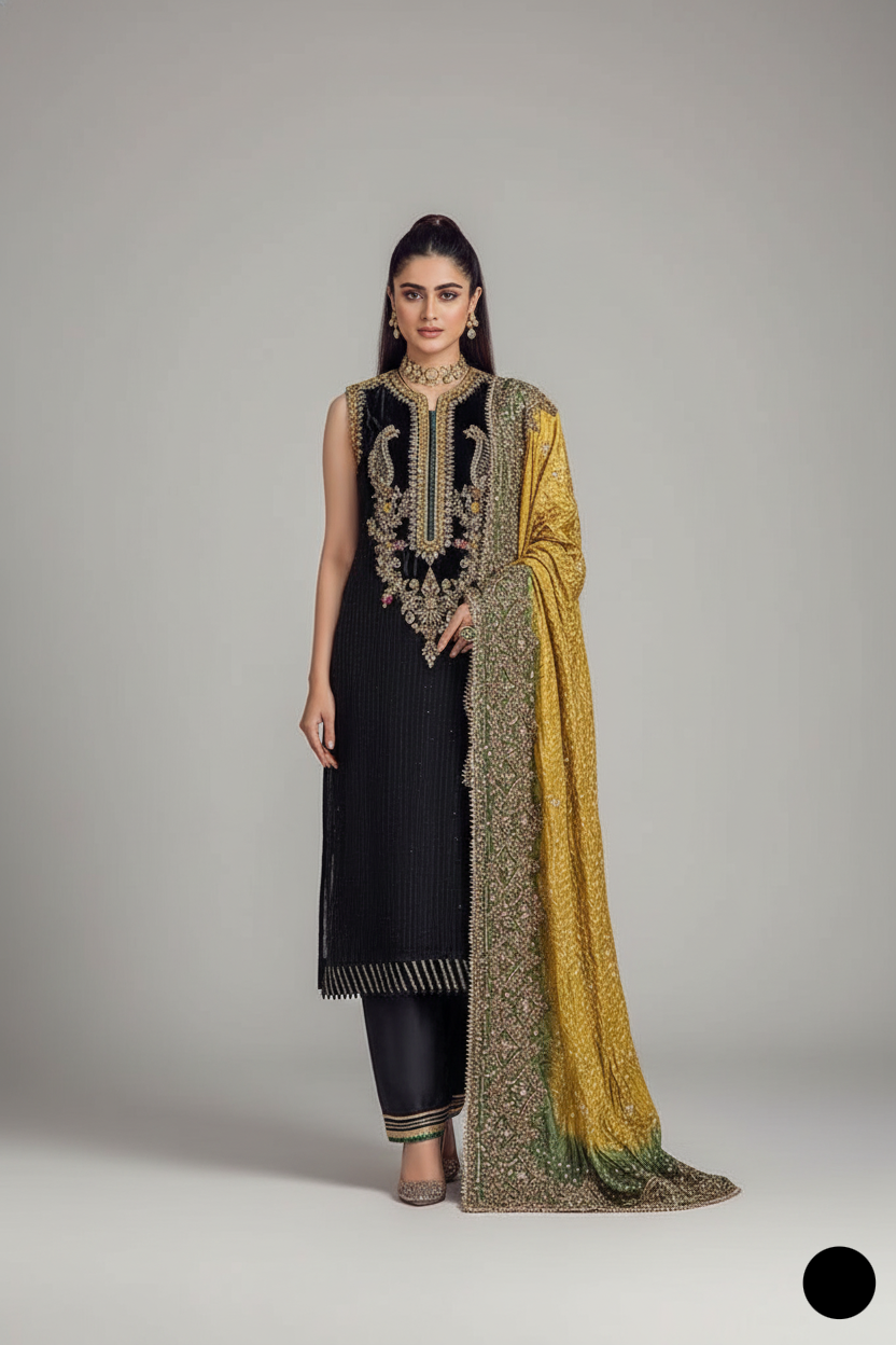 • Dupatta: Silk Chunri (Embroidered, Gotta & Mirror Work)