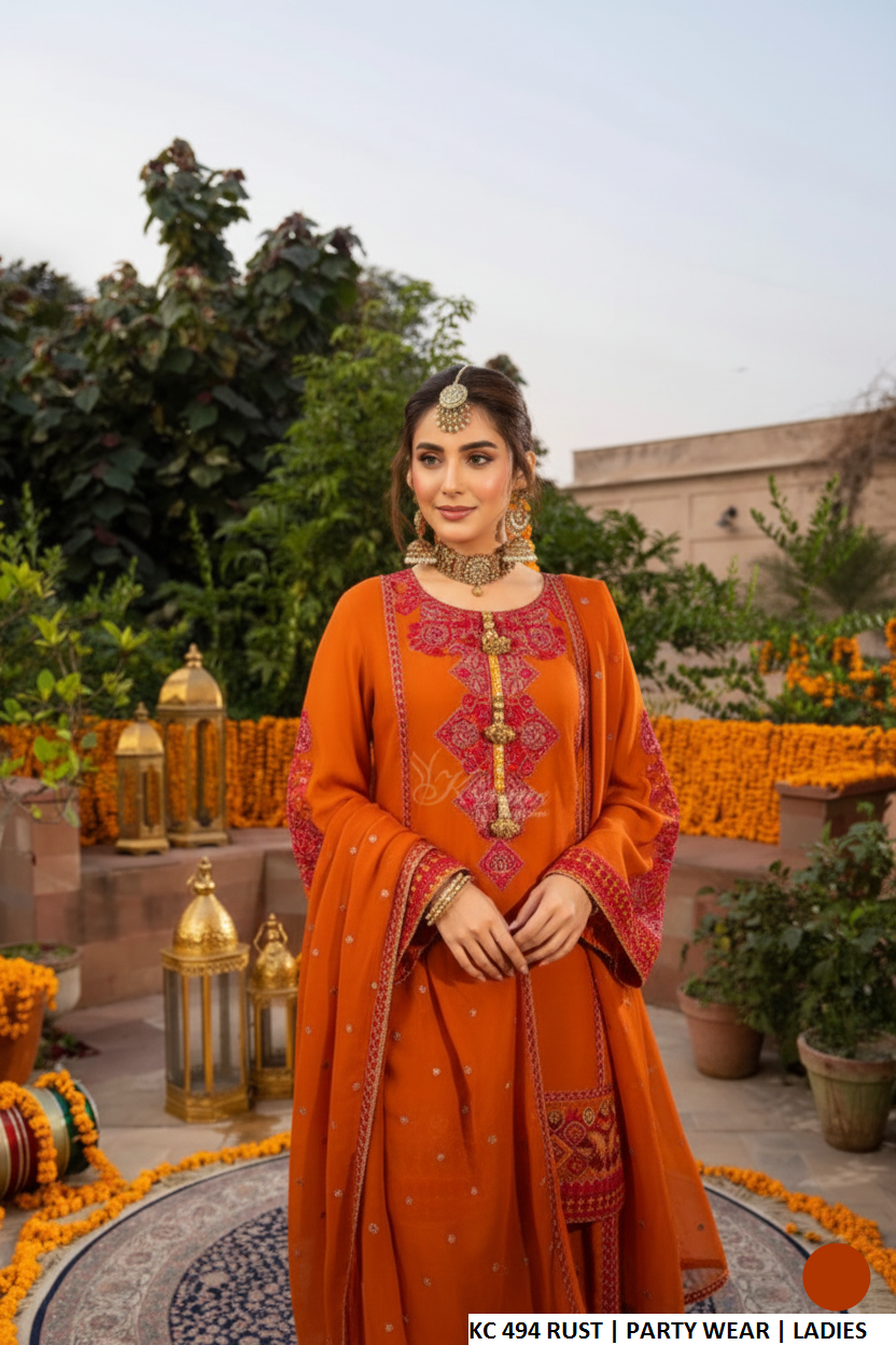 This elegant 3-piece outfit features a stylish short shirt crafted from premium georgette chiffon, paired with a comfortable grip plazo that ensures a graceful drape and ease of movement. The look is completed with a matching georgette chiffon dupatta, adding a soft and luxurious touch. Designed in a short shirt with plazo style, this outfit offers a modern yet traditional appeal with a shirt length of 34/36 inches. With an approximate weight of 1.0 kg, it is ideal for festive gatherings, formal occasions, and special events.