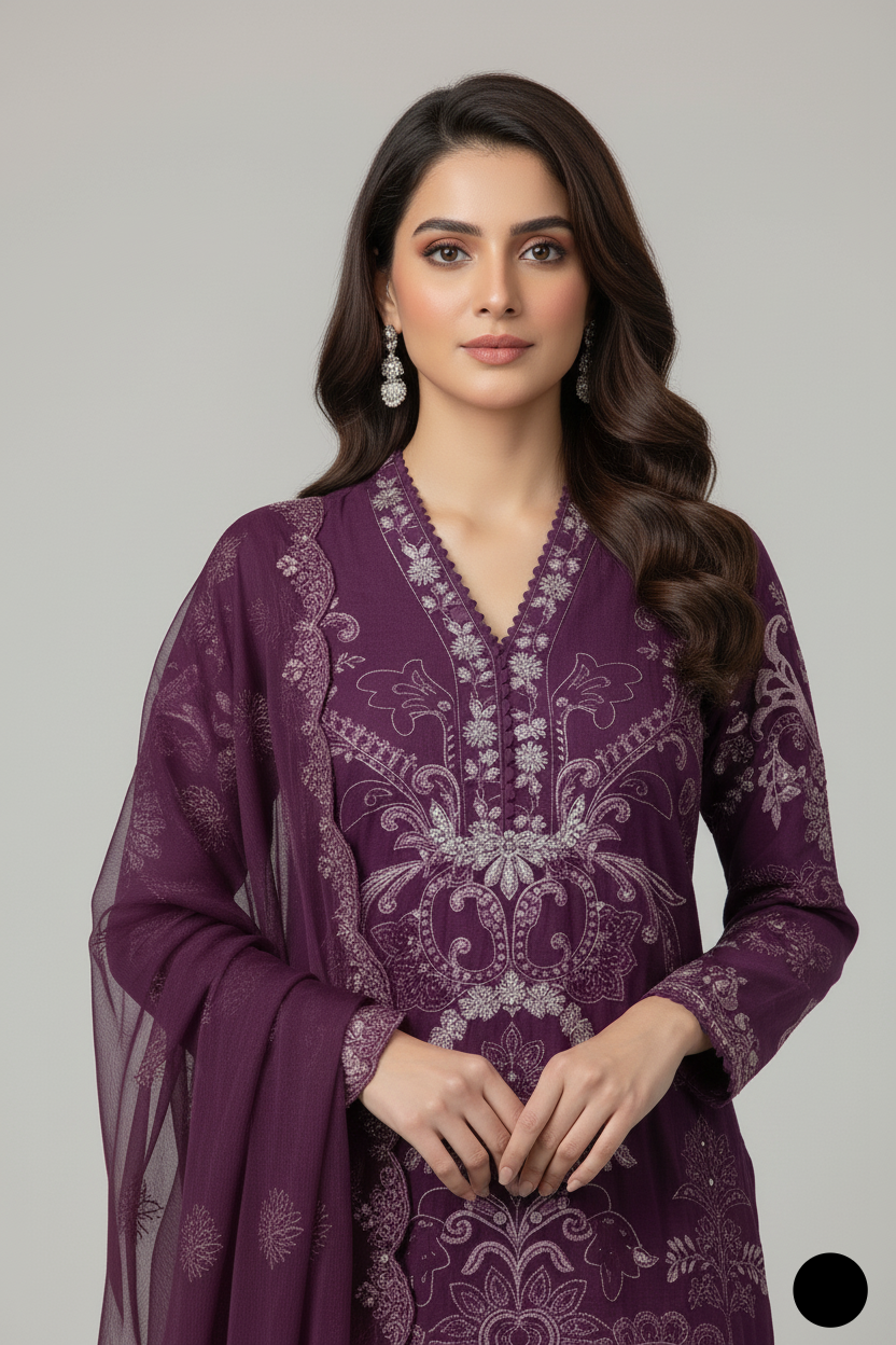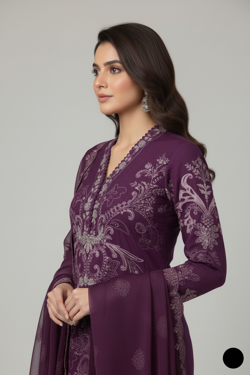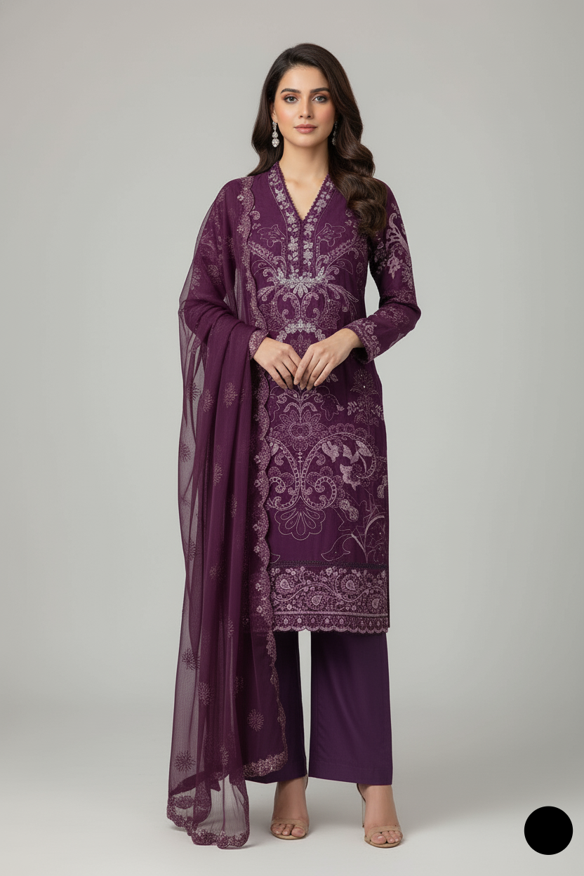 This elegant outfit features a chiffon straight shirt paired with comfortable grip plazo trousers and a matching chiffon dupatta. The shirt has a length of 43 to 45 inches, offering a graceful and modest silhouette. With a total weight of 0.700 kg, the outfit is both lightweight and suitable for all-day wear. Ideal for formal gatherings, festive occasions, or sophisticated everyday style, this ensemble blends simplicity with refined charm.