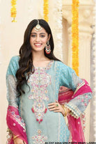 - The shirt fabric is a combination of masuri and net, while the trouser fabric is zari organza. The dupatta is made of net. The style of the outfit is an A-line shirt with gharara. The shirt length is 42/44 inches, and the weight of the outfit is 0.900 kg.