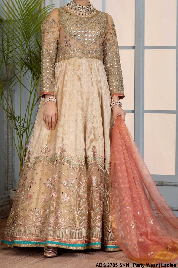 This stunning ensemble features a long frock crafted from delicate organza, exuding elegance and grace. With a flowing length of 54 to 56 inches, the frock creates a regal and sophisticated silhouette. It is paired with grip fabric trousers, ensuring both comfort and style. The matching organza dupatta adds a touch of refinement, enhancing the overall charm of the outfit. Weighing approximately 1.300 kg, this ensemble is perfect for special occasions, offering a blend of timeless beauty and contemporary fashion.