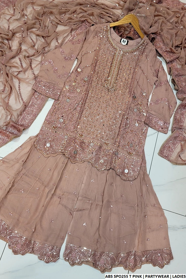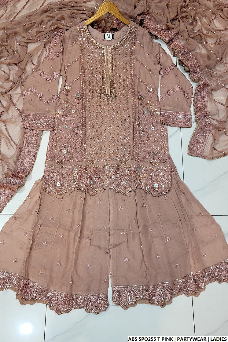 Make a style statement with this graceful ensemble featuring a short chiffon shirt paired with a traditional chiffon gharara. Designed with a shirt length of 34 to 36 inches, the outfit offers a classic yet modern silhouette. The entire outfit—including shirt, gharara, and dupatta—is made from flowy chiffon, giving it a soft, elegant drape and light feel. Weighing 1.100 kg, this set is perfect for festive events, mehndi functions, or semi-formal occasions, where style and comfort go hand in hand.