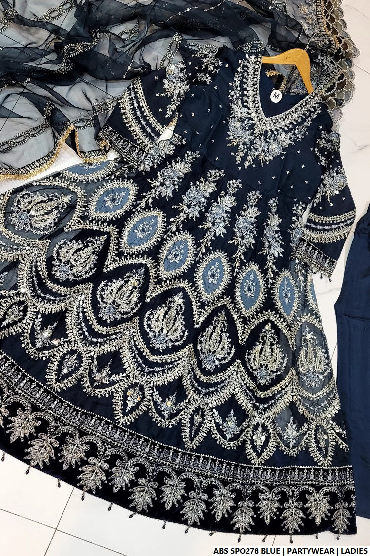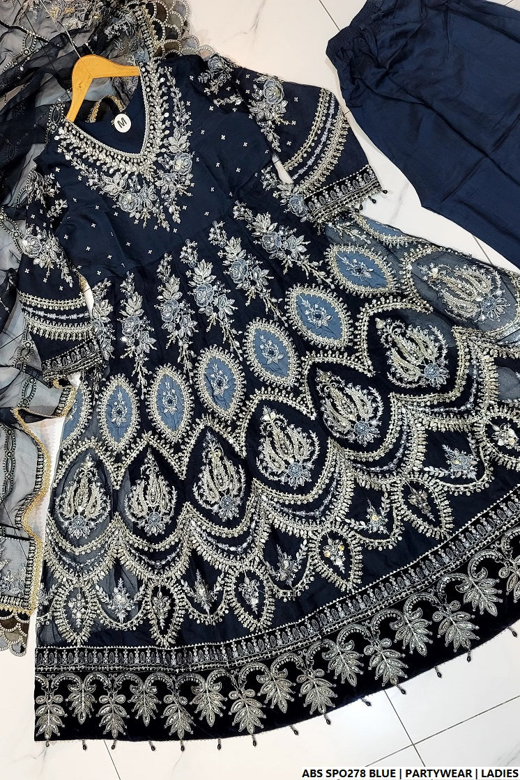 This luxurious outfit is designed with a beautifully crafted organza shirt and matching organza dupatta, paired with soft and comfortable viscose trousers. The style labeled as "55/57" offers a contemporary silhouette that complements the rich texture of the fabrics. With a shirt length of 41/43 inches and a total weight of 1.700 kg, this ensemble is perfect for formal events, combining elegance with a modern touch for a standout appearance.